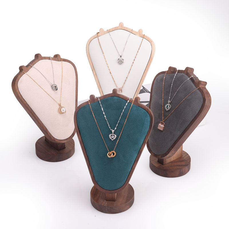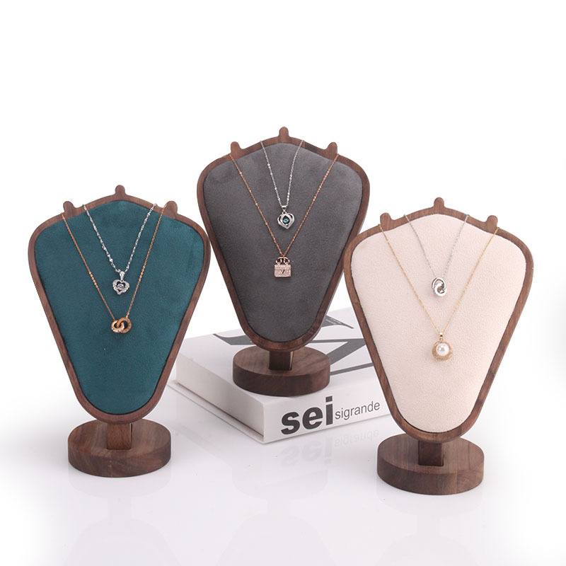 Collier bois affichage, Noyer, avec cuir PU & velours de coton, plus de couleurs à choisir, 150x85x215mm, Vendu par PC