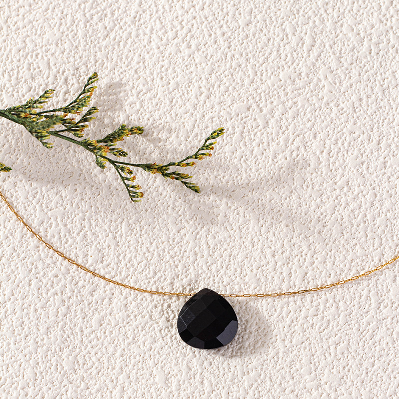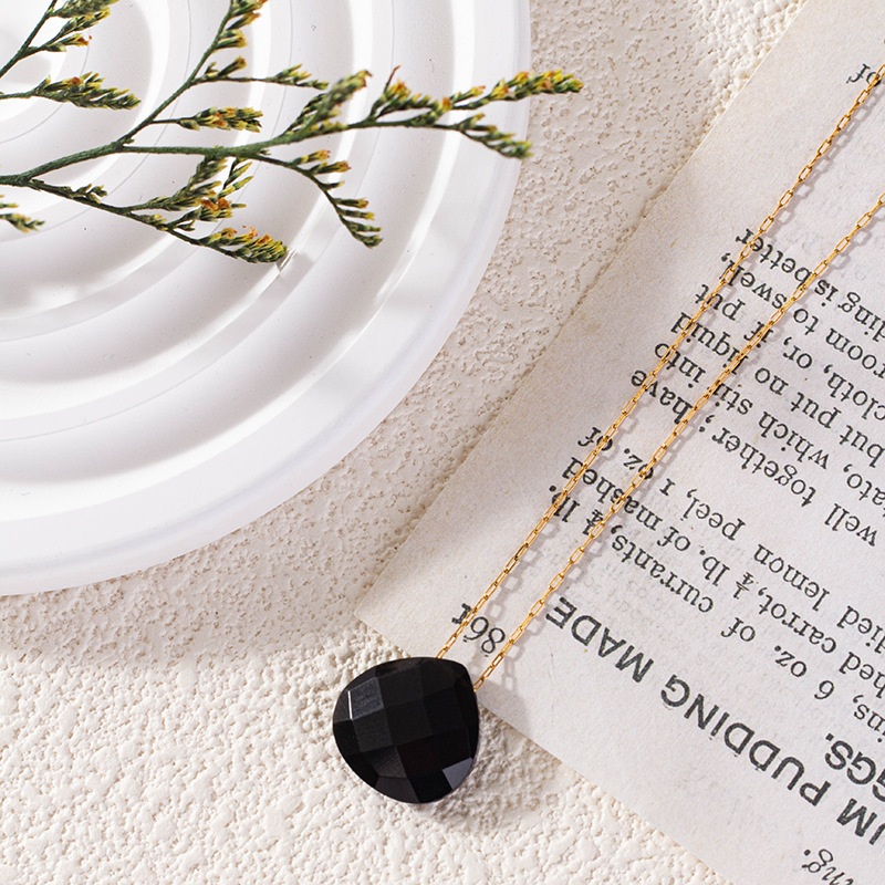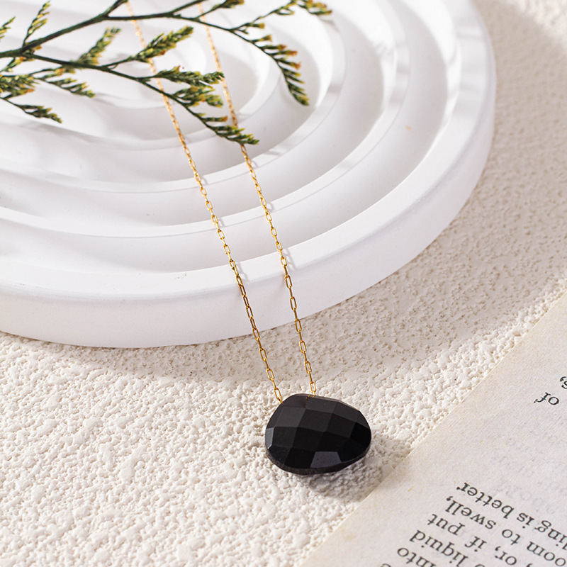 Collier d'Agate Noire, laiton, avec agate noire, Placage de couleur d'or, pour femme, noire, Longueur:46 cm, Vendu par PC