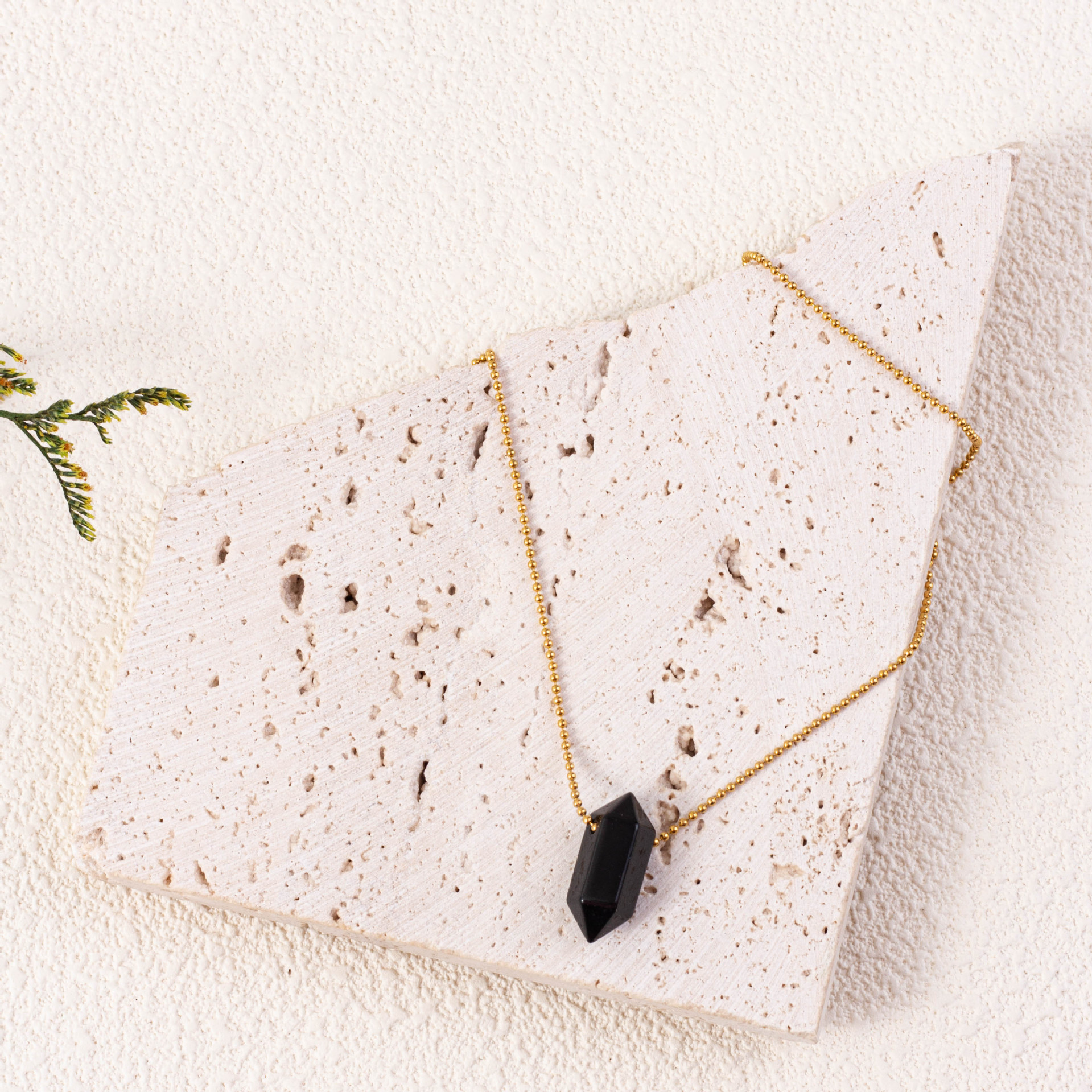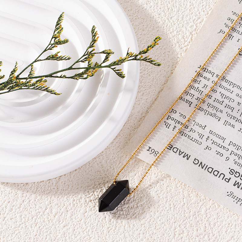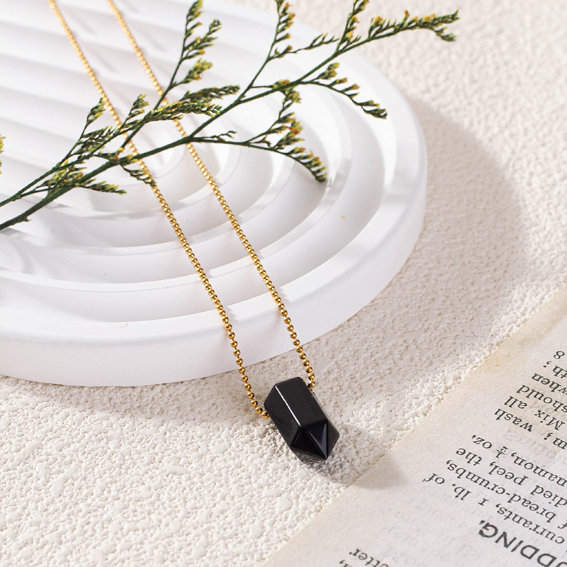 Collier d'Agate Noire, laiton, avec agate noire, Placage de couleur d'or, pour femme, noire, Longueur:46 cm, Vendu par PC