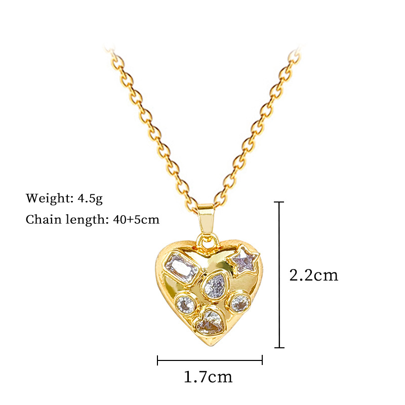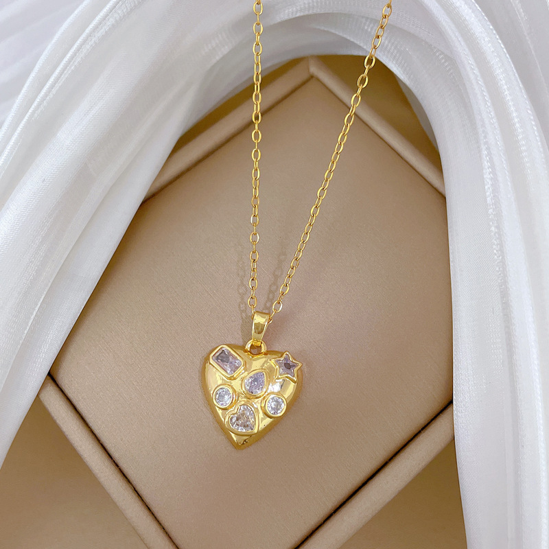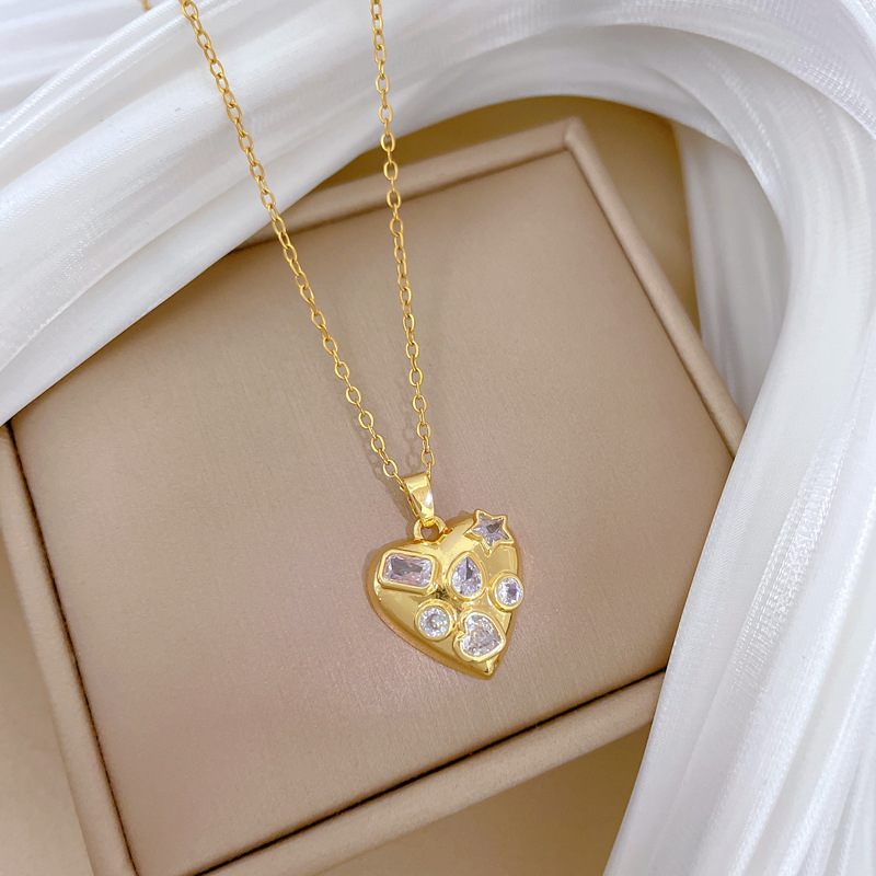 Collier de bijoux de titane, Acier titane, avec laiton, coeur, Placage de couleur d'or, bijoux de mode & avec strass, doré, Vendu par PC