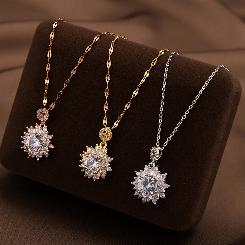 Collier de bijoux de titane, Acier titane, avec zircon cubique, Placage, bijoux de mode & pour femme, plus de couleurs à choisir, Longueur:Environ 41 cm, Vendu par PC