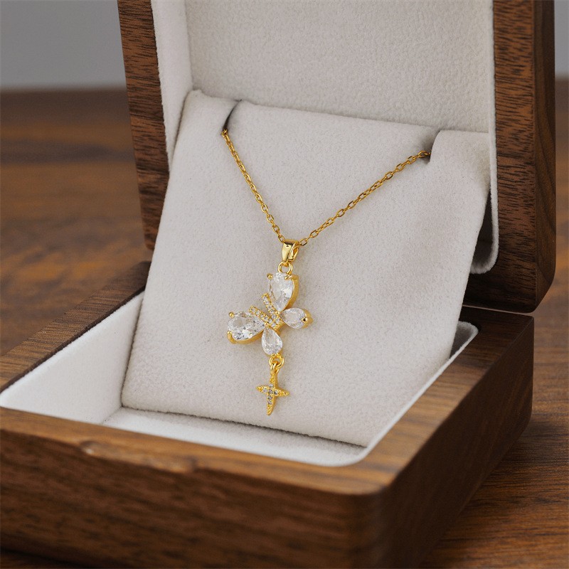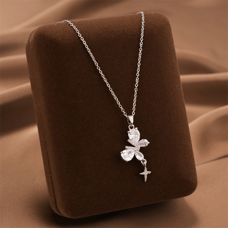 Collier de bijoux de titane, Acier titane, avec zircon cubique, papillon, Placage, bijoux de mode & pour femme & avec strass, plus de couleurs à choisir, Vendu par PC