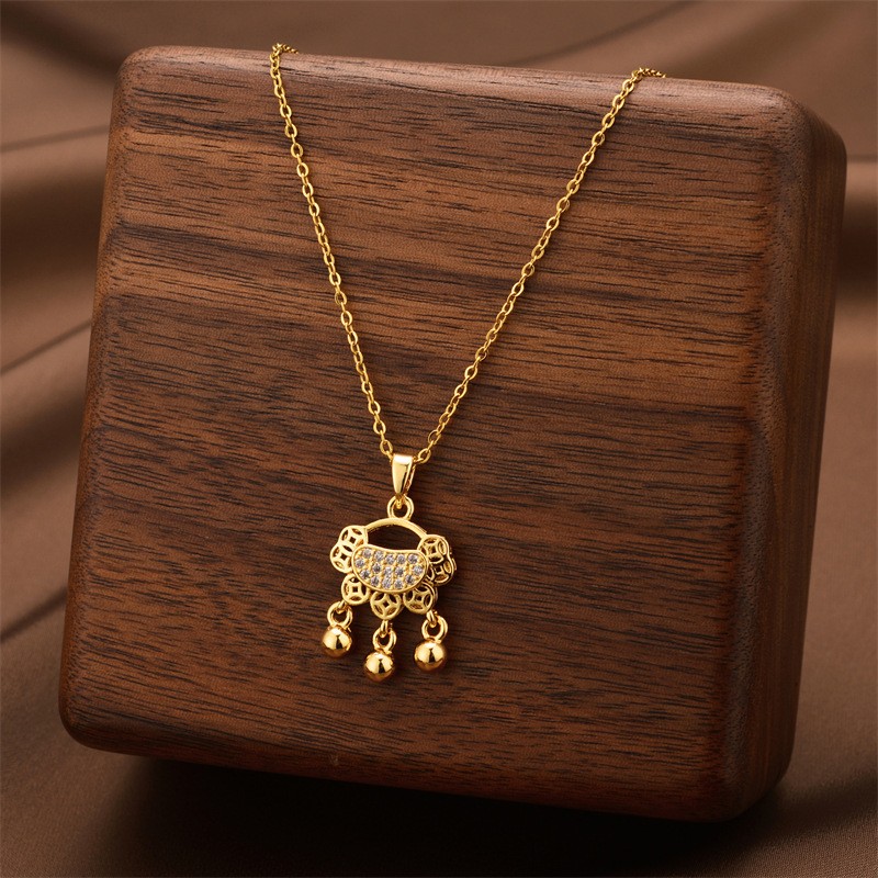Collier de bijoux de titane, Acier titane, avec zircon cubique, Placage, bijoux de mode & pour femme, doré, Longueur:Environ 41 cm, Vendu par PC