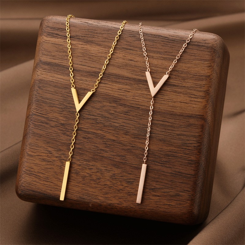 Acier titane Collier de projection miniature, avec Pierre naturelle, avec 5cm chaînes de rallonge, Lettre d’alphabet, Placage, Style coréen & pour femme, plus de couleurs à choisir Environ 18.12 pouce, Vendu par brin