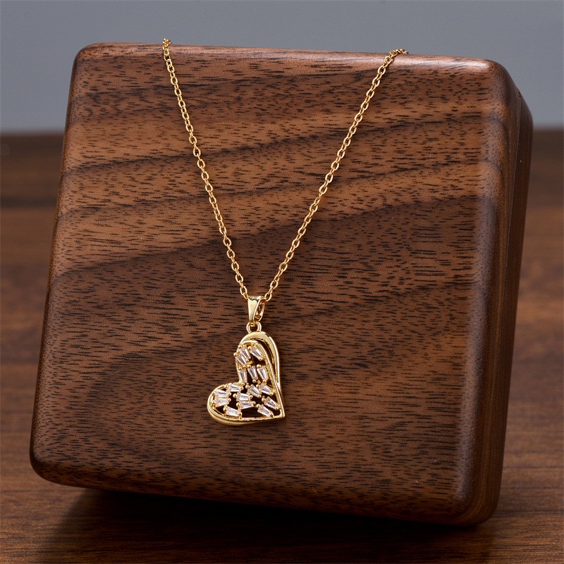 Collier de bijoux de titane, Acier titane, coeur, Placage, chaîne ovale & avec zircone cubique, plus de couleurs à choisir Environ 16 pouce, Vendu par brin