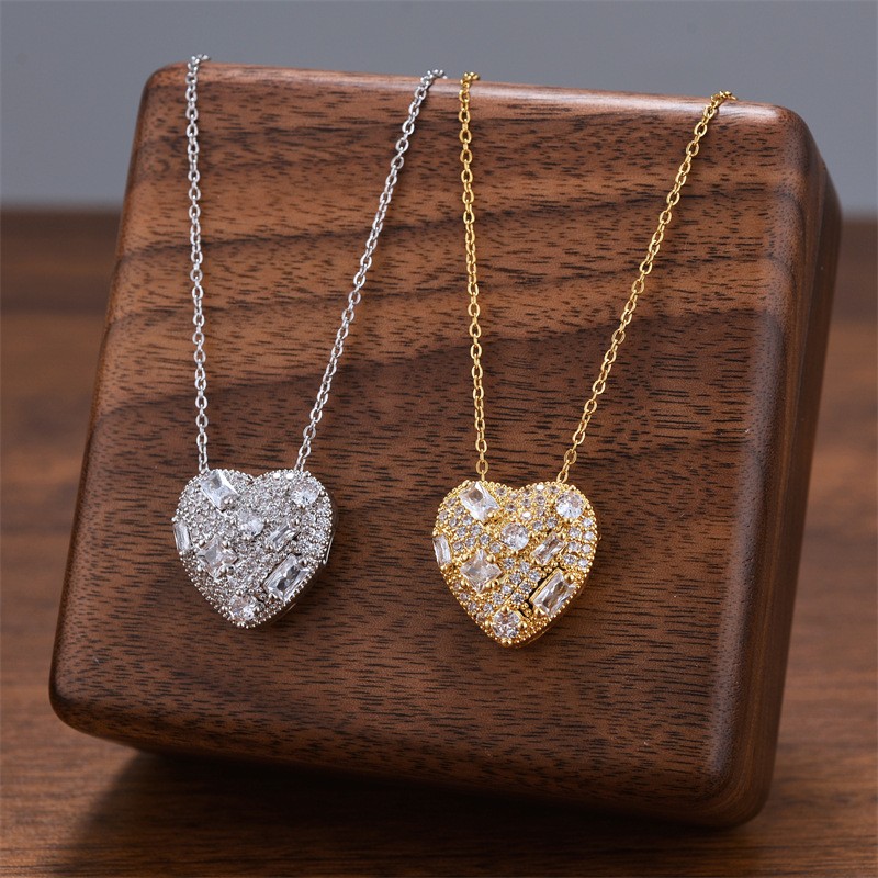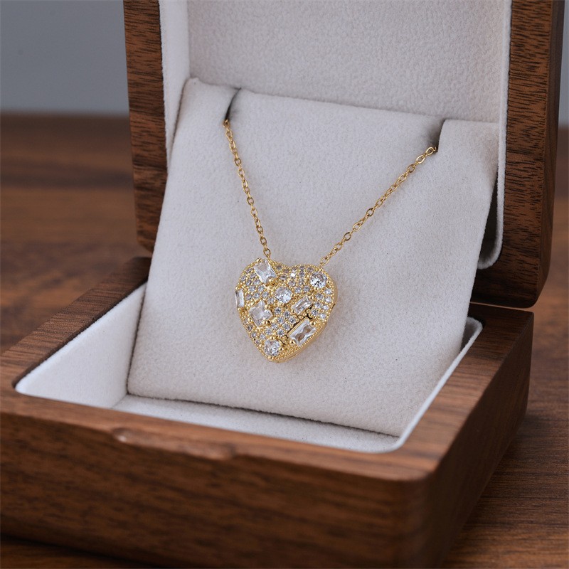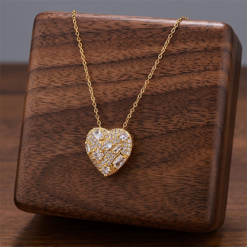 Collier de bijoux de titane, Acier titane, coeur, Placage, chaîne ovale & avec zircone cubique, plus de couleurs à choisir Environ 16 pouce, Vendu par brin