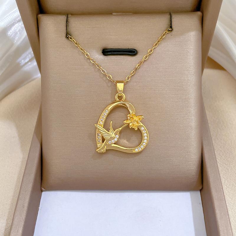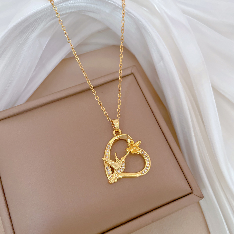Collier de bijoux de titane, Acier titane, avec laiton, Placage, pavé de micro zircon & pour femme & creux, doré, Vendu par PC