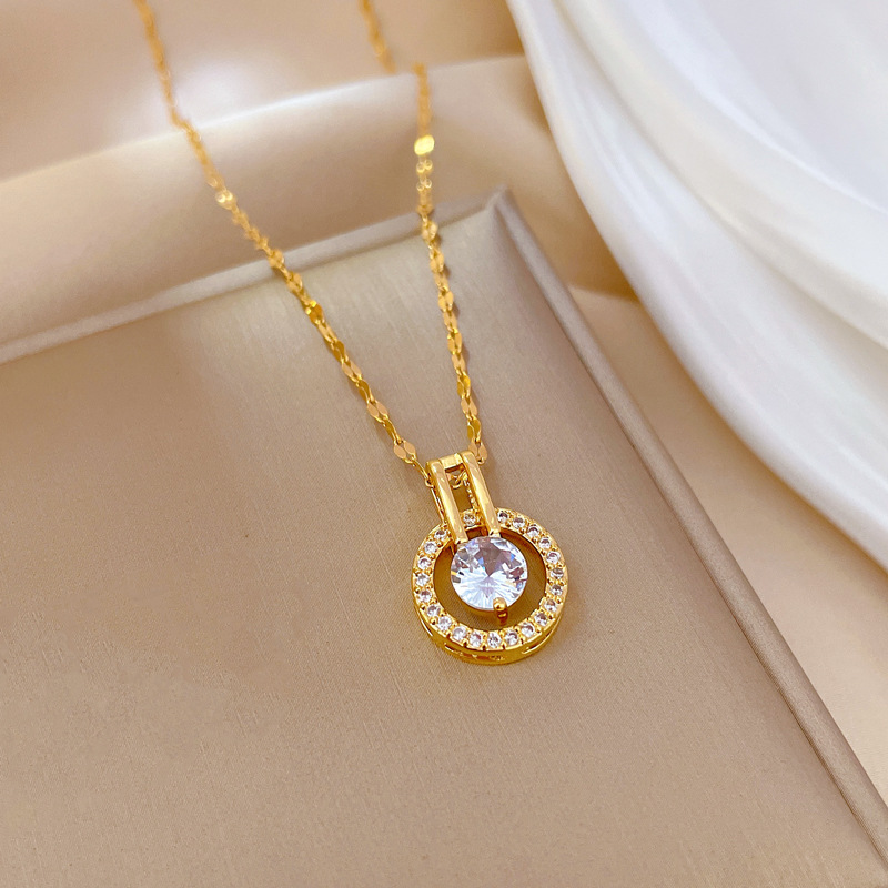 Collier de bijoux de titane, Acier titane, avec laiton, Placage, pavé de micro zircon & pour femme & creux, doré, Vendu par PC