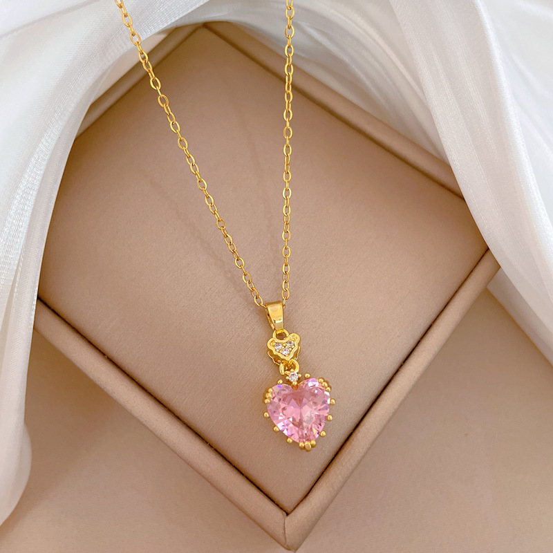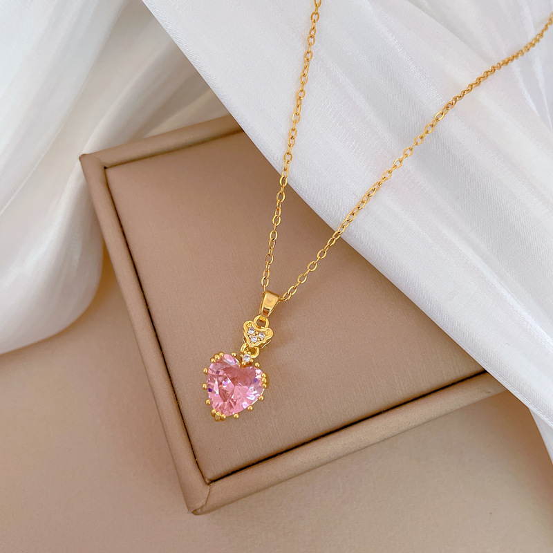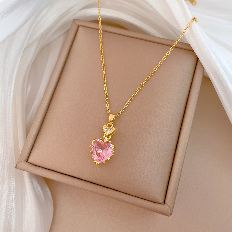 Collier de bijoux de titane, Acier titane, coeur, Placage, chaîne ovale & avec zircone cubique, plus de couleurs à choisir Environ 16 pouce, Vendu par brin