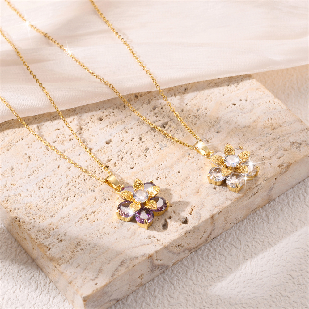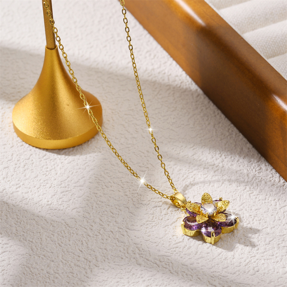 Collier de bijoux de titane, Acier titane, avec laiton, fleur, Placage, bijoux de mode & pavé de micro zircon & pour femme, plus de couleurs à choisir, Vendu par PC