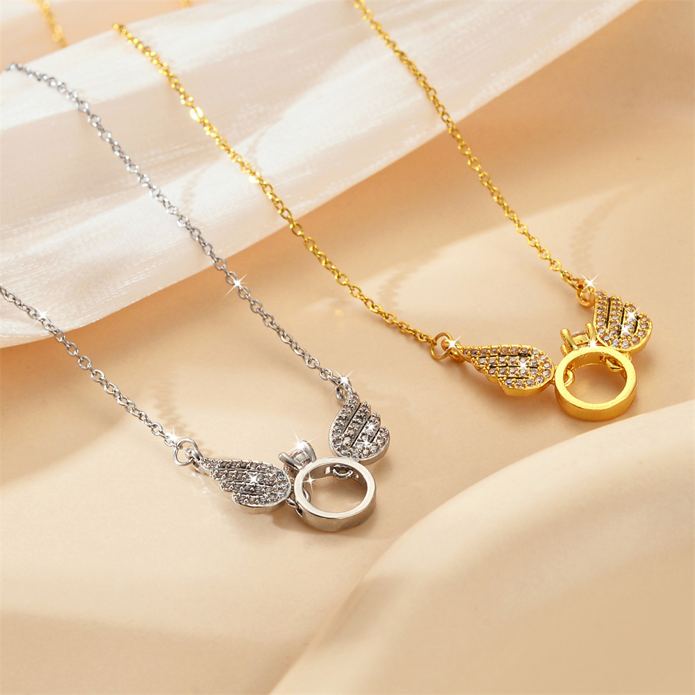 Collier de bijoux de titane, Acier titane, avec laiton, aile d'ange, Placage, bijoux de mode & pavé de micro zircon & pour femme, plus de couleurs à choisir, Vendu par PC