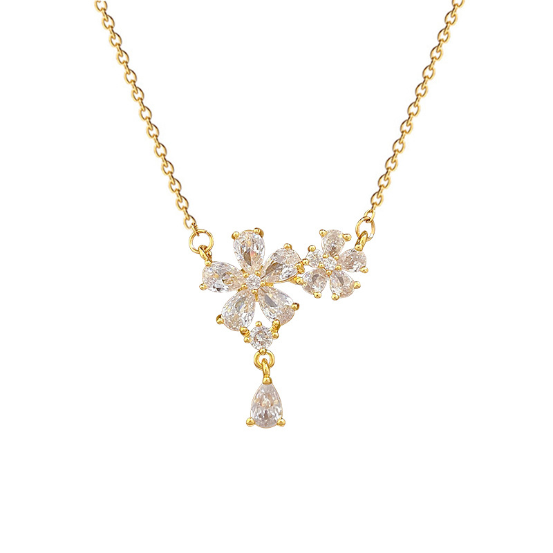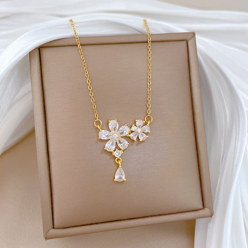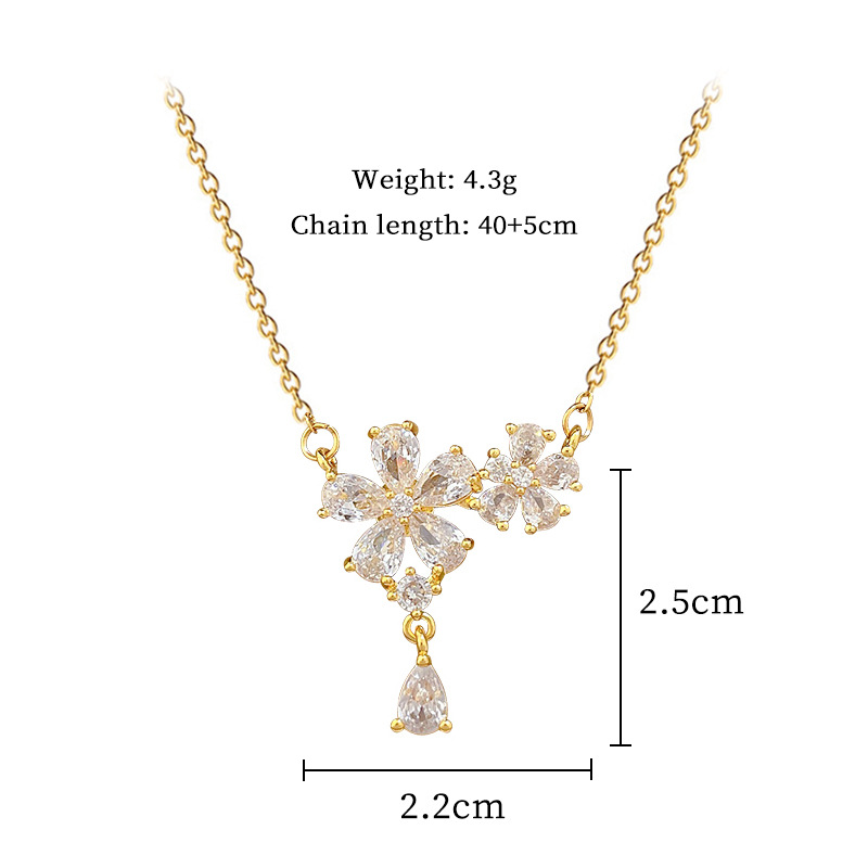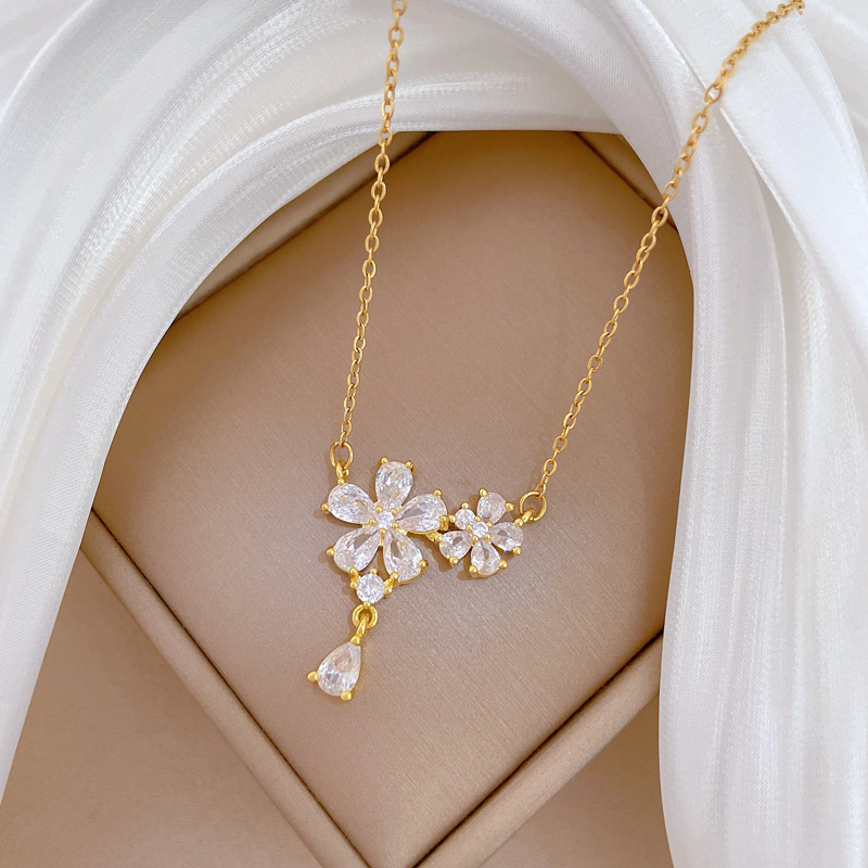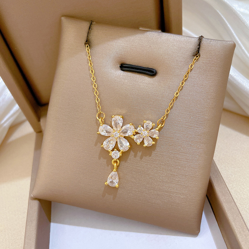 Collier de bijoux de titane, Acier titane, avec laiton, fleur, bijoux de mode & pavé de micro zircon & pour femme, doré, Vendu par PC