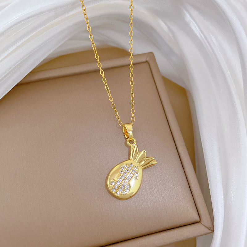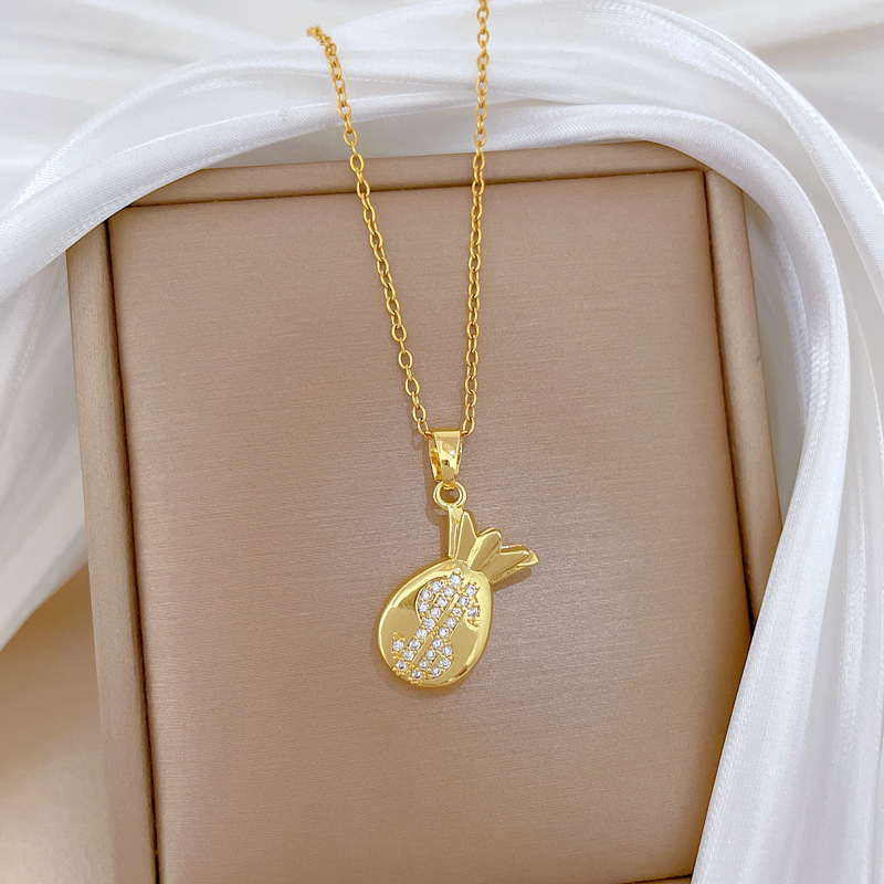 Collier de bijoux de titane, Acier titane, avec laiton, bijoux de mode & pavé de micro zircon & pour femme, doré, Vendu par PC