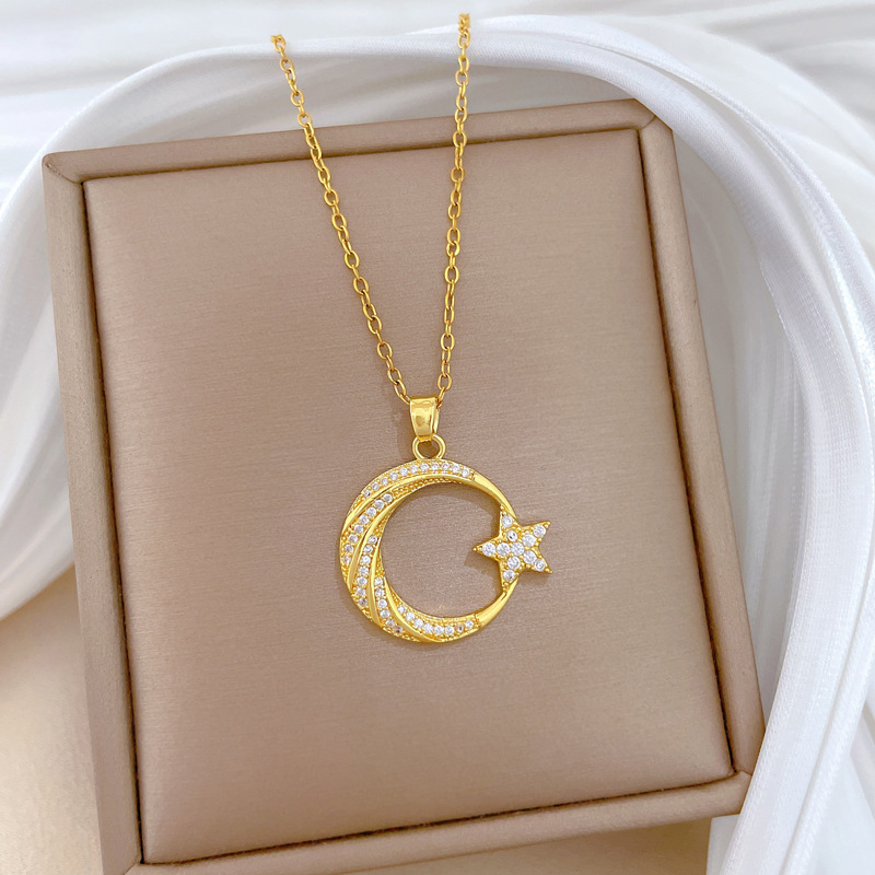 Collier de bijoux de titane, Acier titane, avec laiton, bijoux de mode & pavé de micro zircon & pour femme, doré, Vendu par PC
