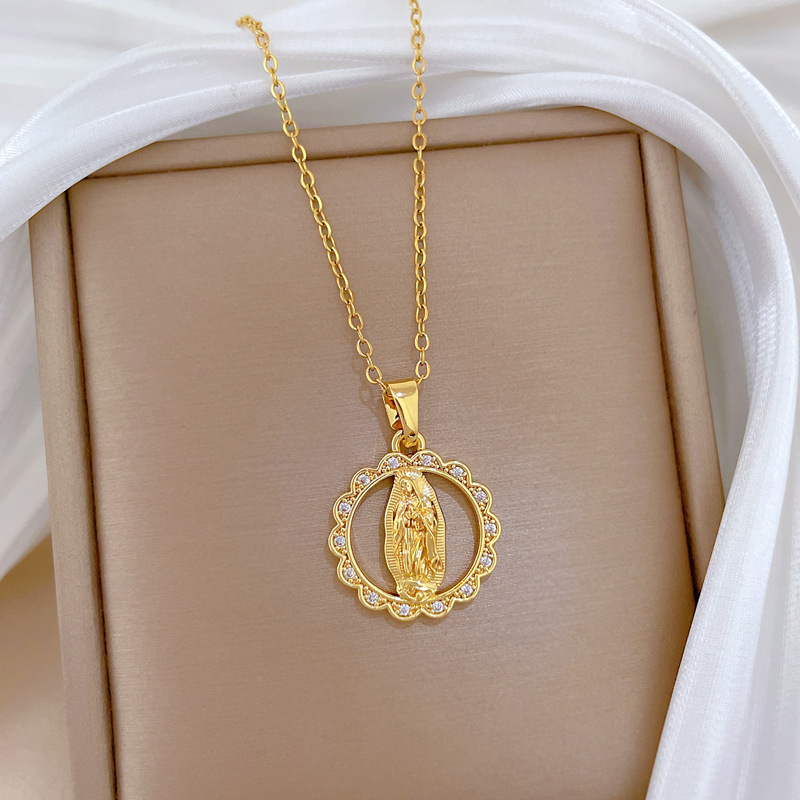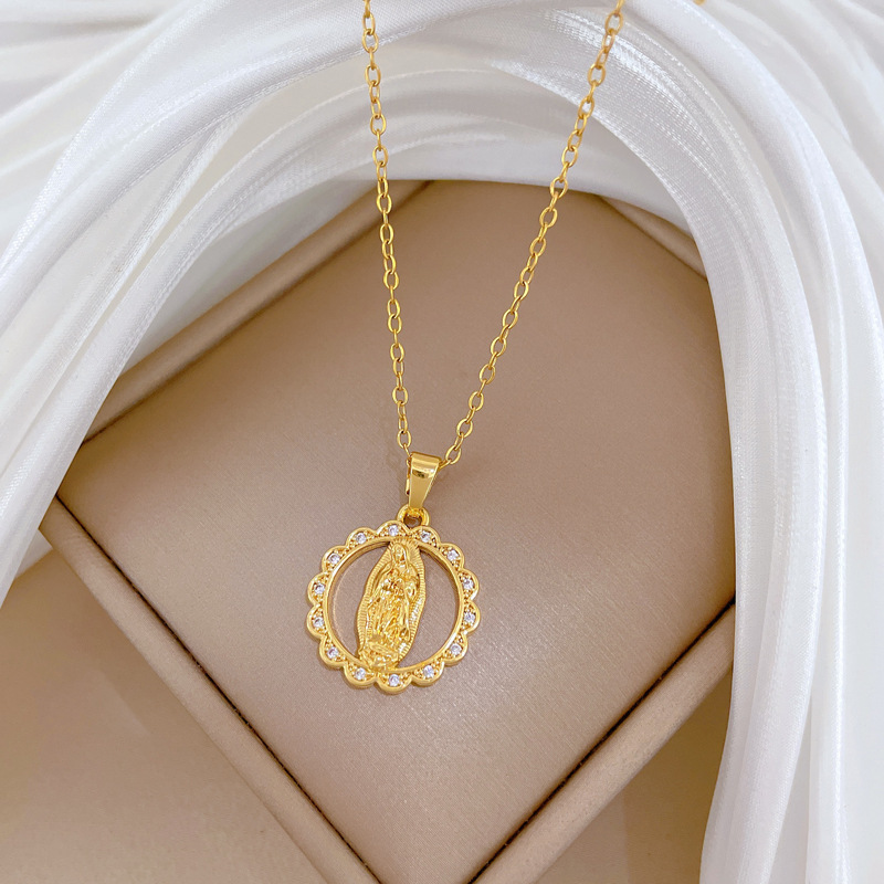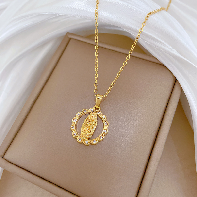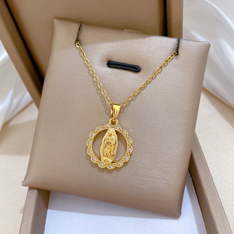Collier de bijoux de titane, Acier titane, avec laiton, Rond, pavé de micro zircon & pour femme & creux, doré, Vendu par PC