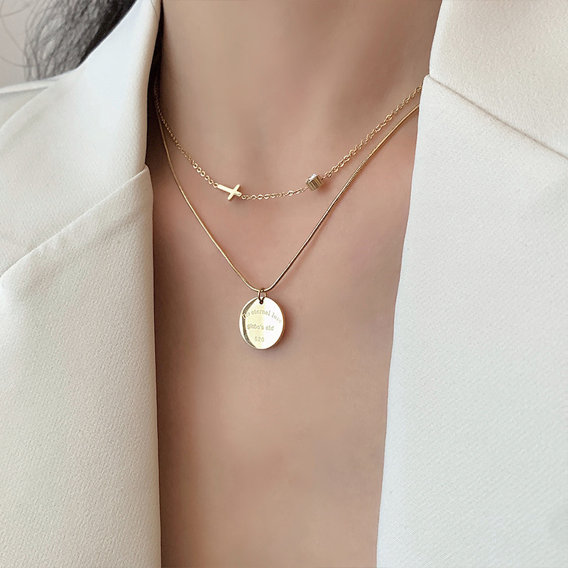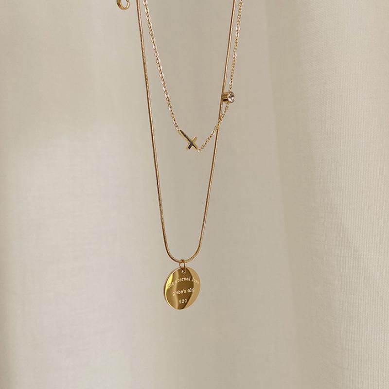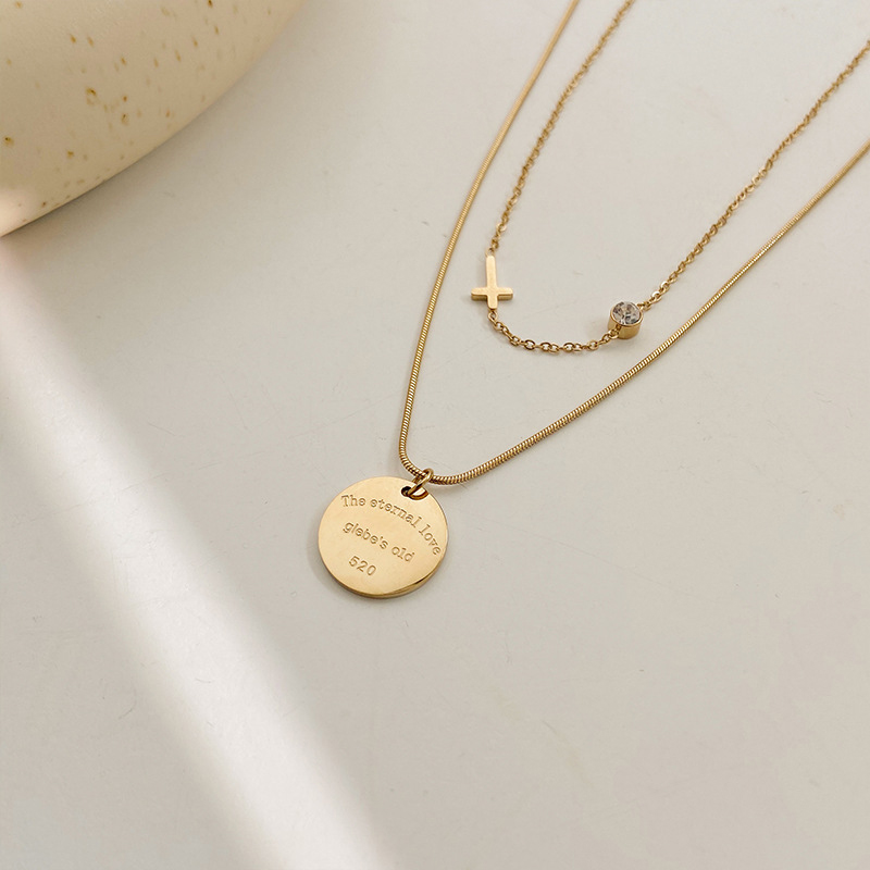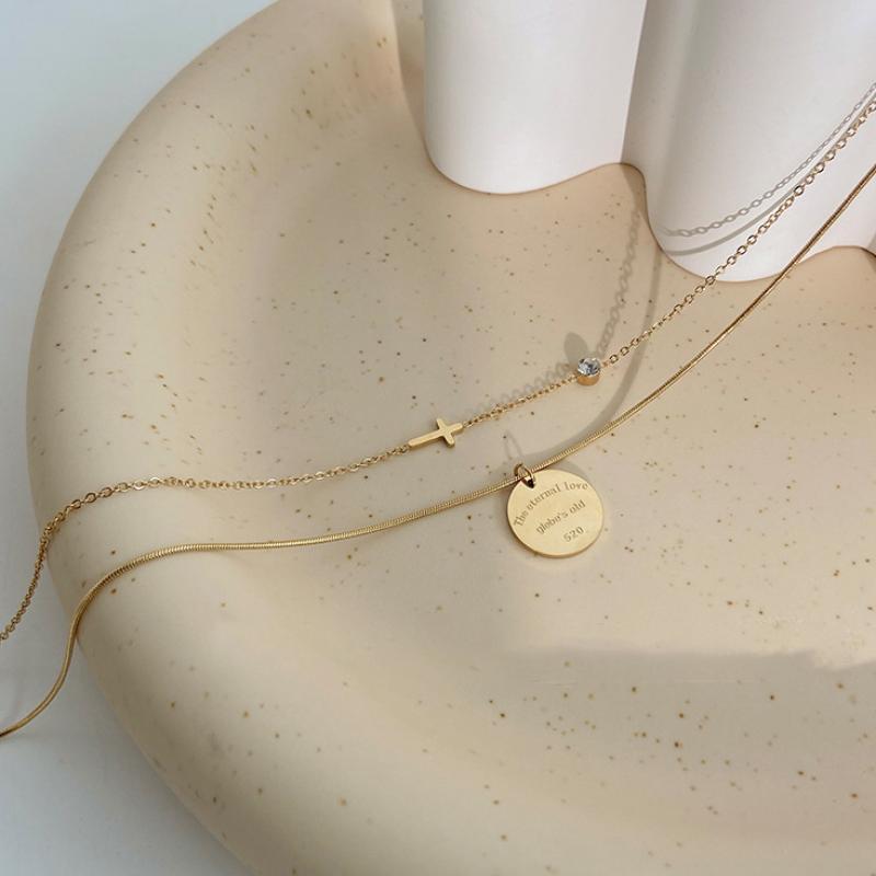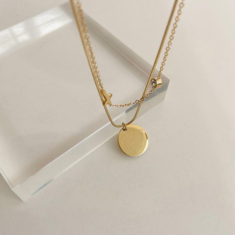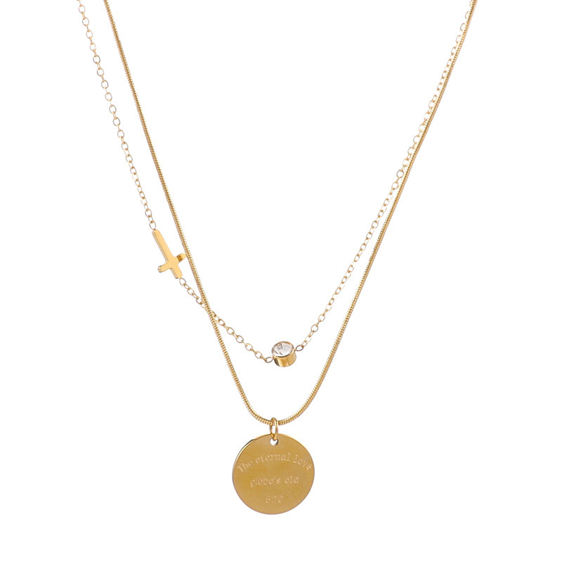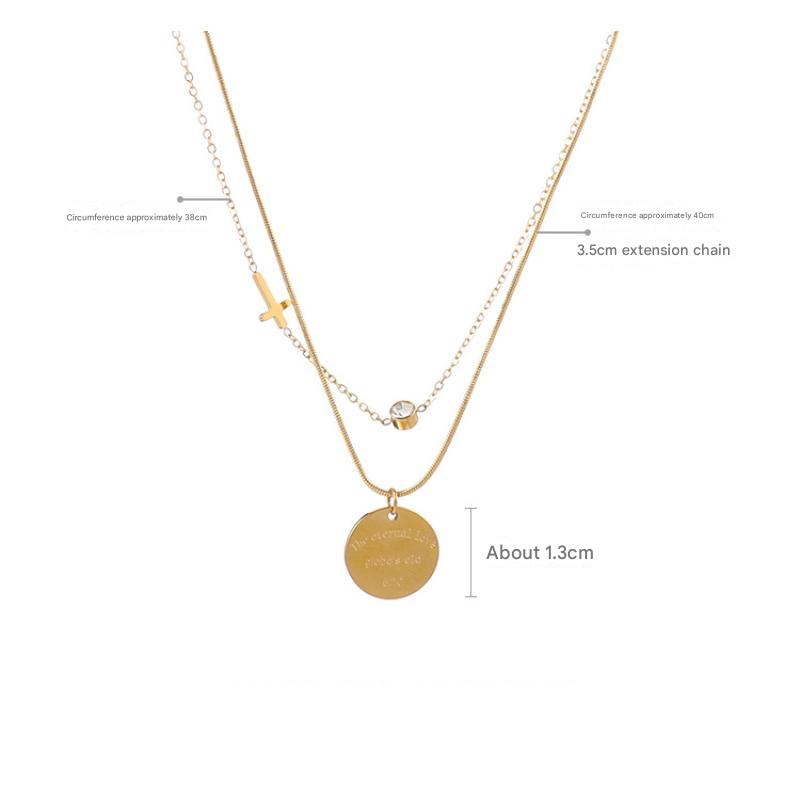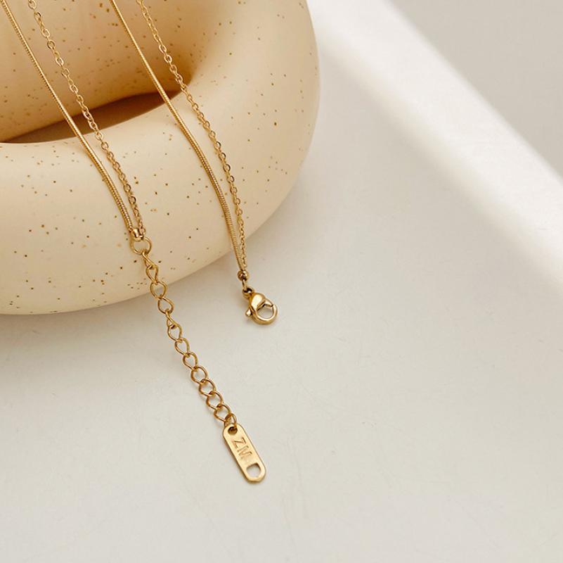Collier de bijoux de titane, Acier titane, Double couche & pour femme & avec strass, doré, Vendu par PC