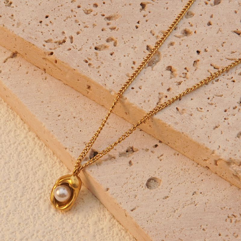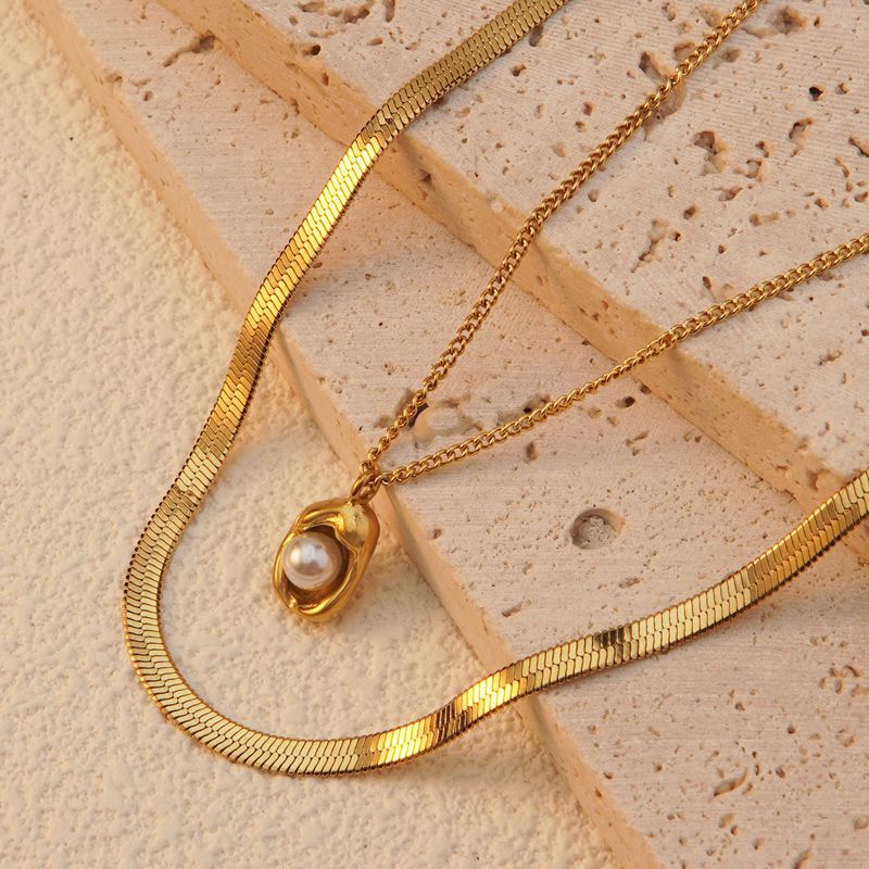 Collier de bijoux en acier inoxydable, Acier inoxydable 304, avec perle de plastique, Placage, styles différents pour le choix & pour femme, doré, Vendu par PC