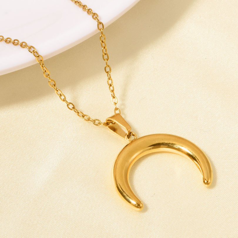 Collier de bijoux en acier inoxydable, Acier inoxydable 304, avec 5CM chaînes de rallonge, lune, Placage, pour femme, plus de couleurs à choisir, Longueur:40 cm, Vendu par PC