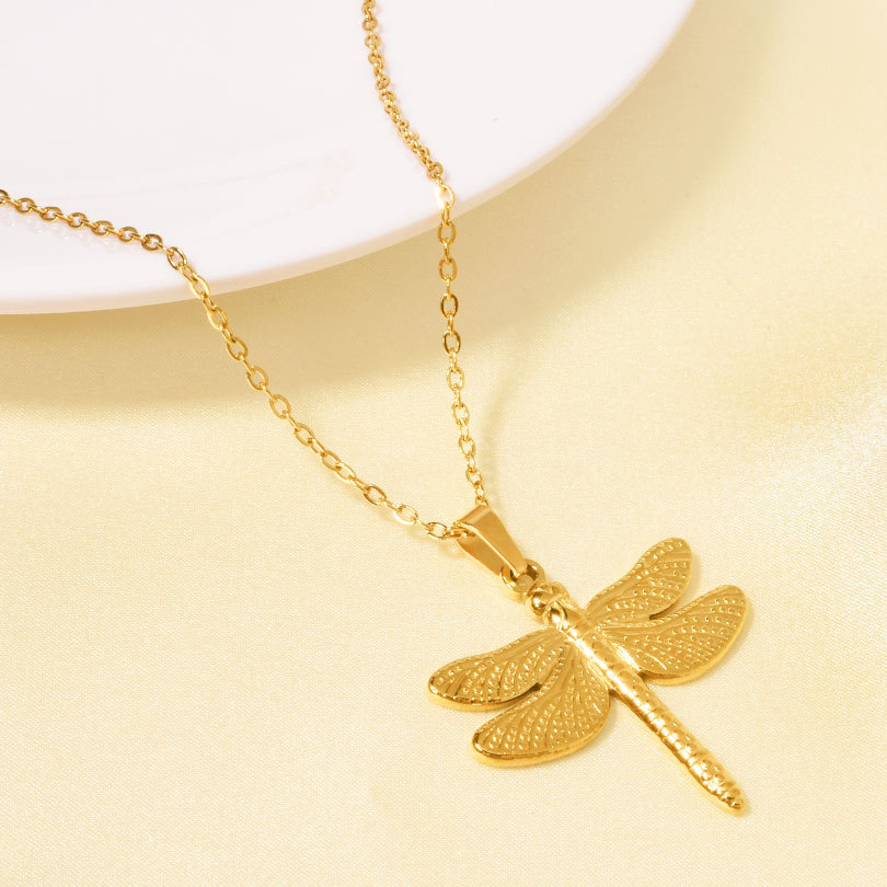 Collier de bijoux en acier inoxydable, Acier inoxydable 304, avec 5CM chaînes de rallonge, libellule, Placage, pour femme, plus de couleurs à choisir, Longueur:40 cm, Vendu par PC