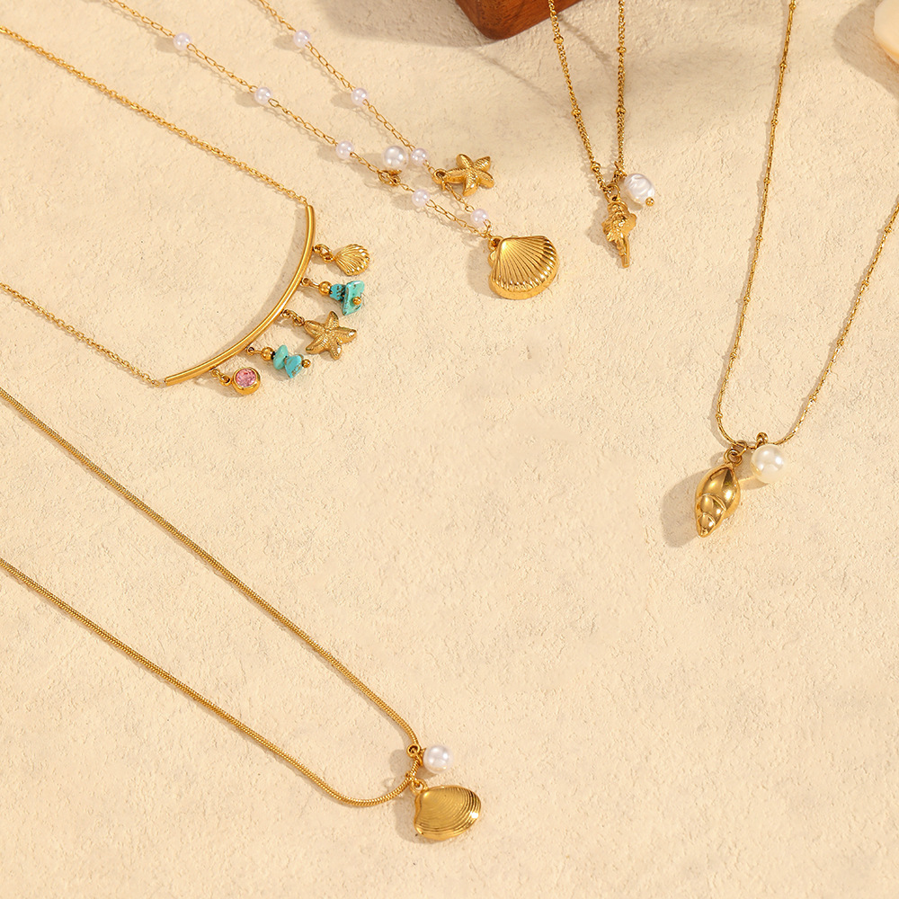 Collier de bijoux en acier inoxydable, Acier inoxydable 304, avec turquoise & perle de plastique, Placage de couleur d'or, styles différents pour le choix & pour femme, plus de couleurs à choisir, Vendu par PC
