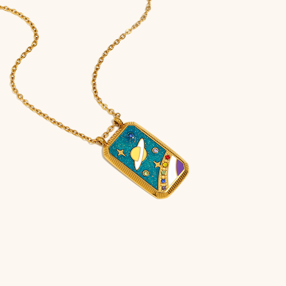 Collier de bijoux en acier inoxydable, Acier inoxydable 304, rectangle, Placage de couleur d'or, modèles différents pour le choix & pour femme & émail & avec strass, plus de couleurs à choisir, Vendu par PC