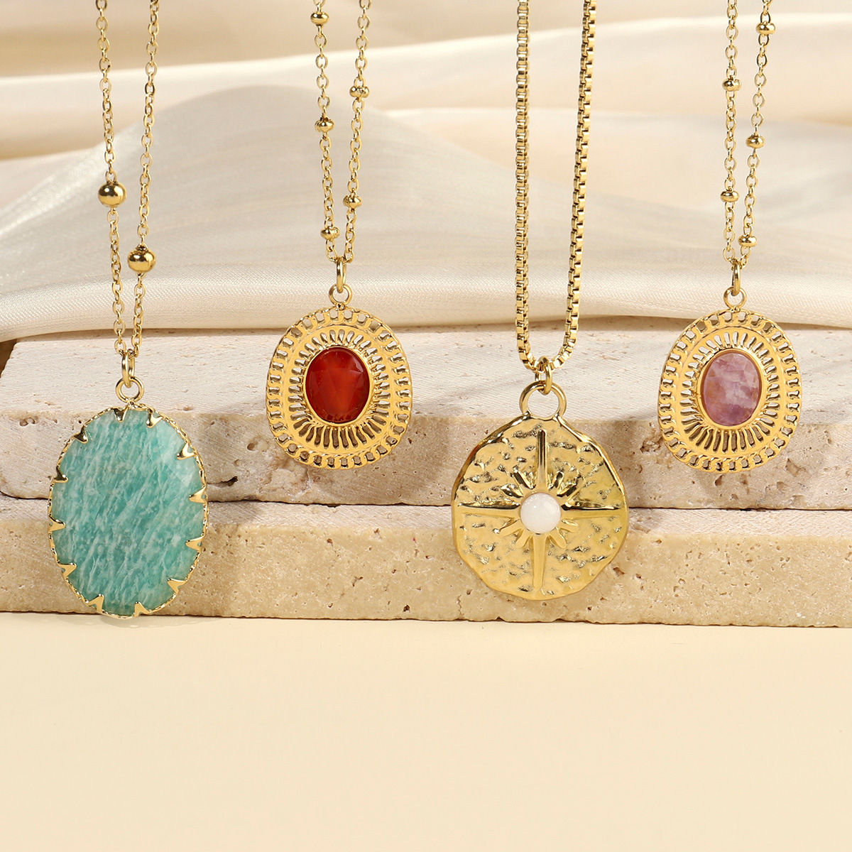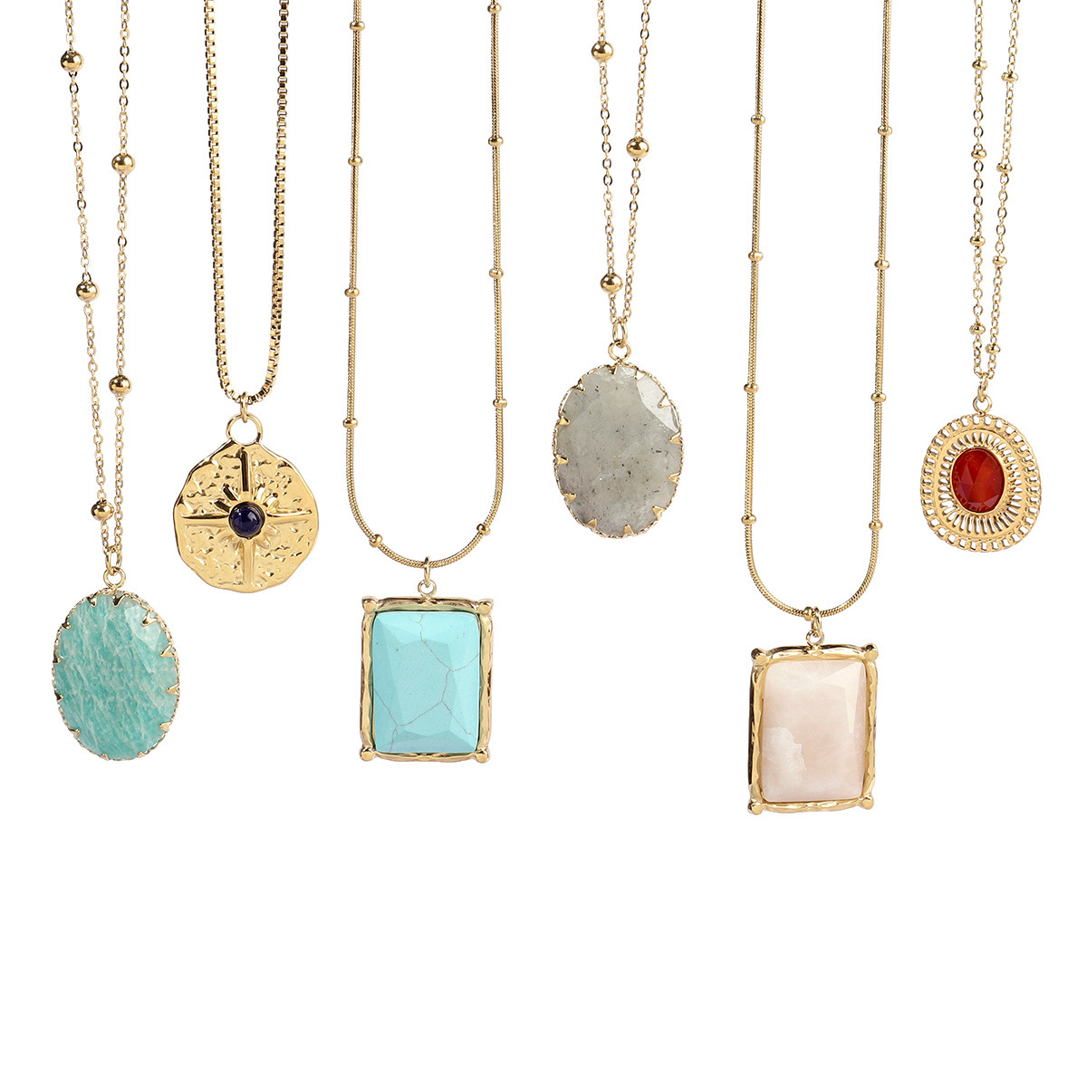 Collier de bijoux en acier inoxydable, Acier inoxydable 304, avec pierre gemme, Placage ionique sous vide, bijoux de mode & normes différentes pour le choix & pour femme, plus de couleurs à choisir, 2PC/sac, Vendu par sac