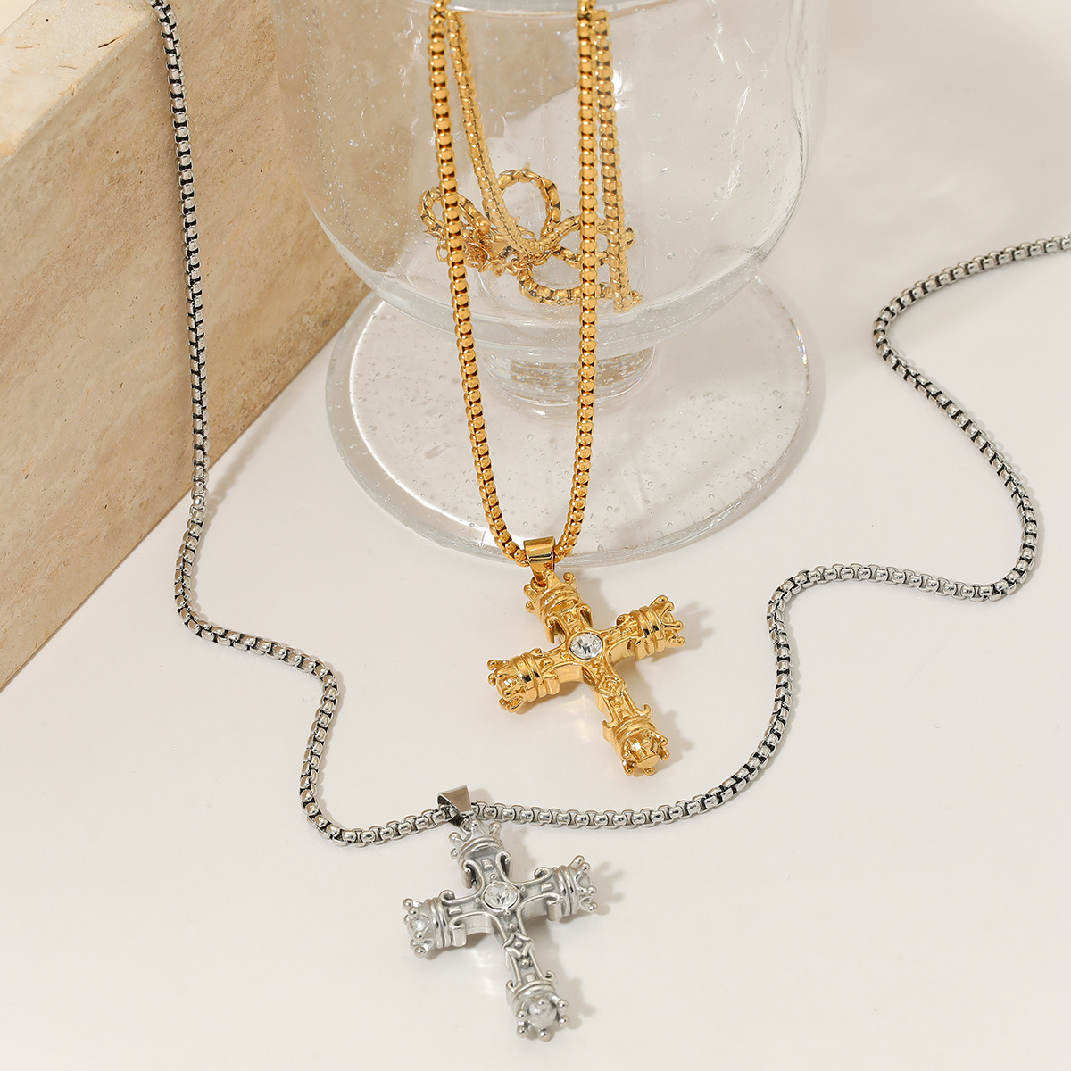 Collier de bijoux en acier inoxydable, Acier inoxydable 304, croix, Placage, bijoux de mode & pour femme & avec strass, plus de couleurs à choisir, Vendu par PC