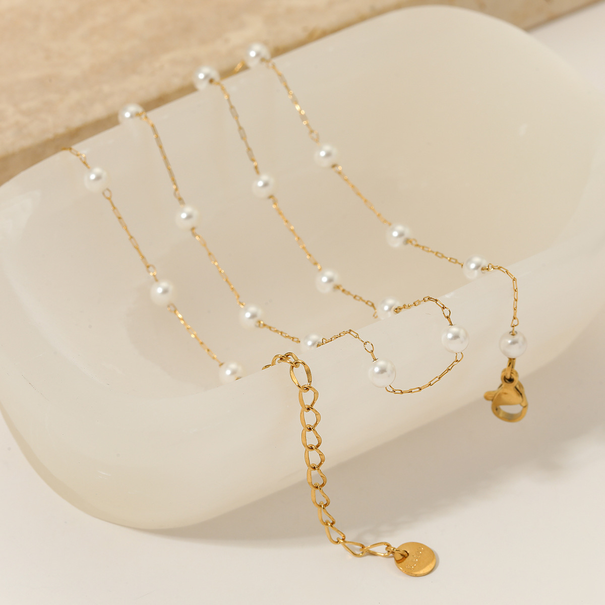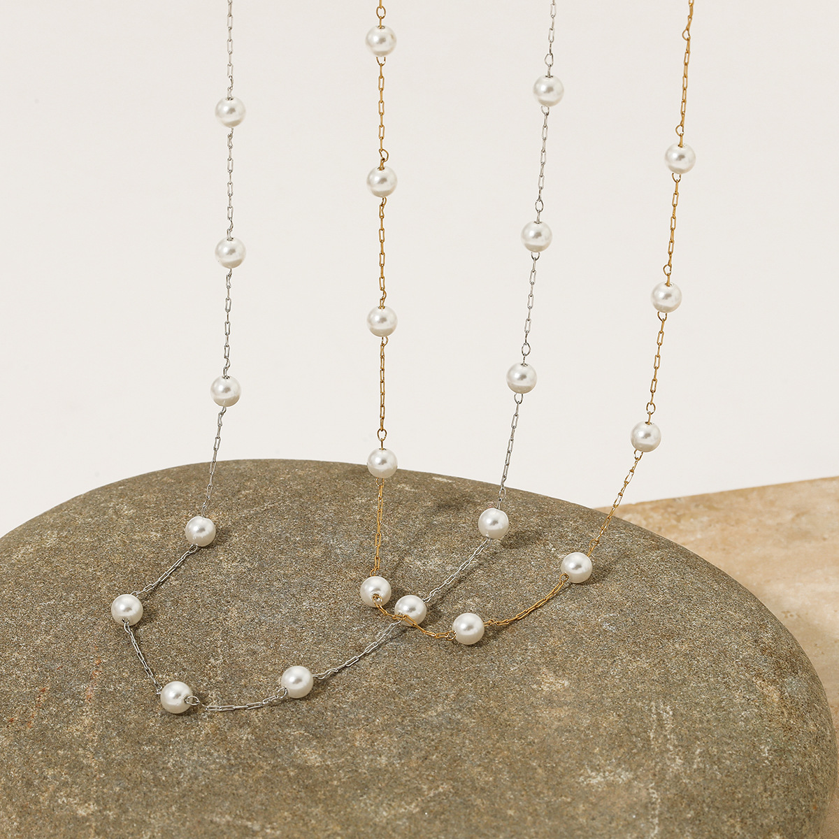 Collier de bijoux en acier inoxydable, Acier inoxydable 304, avec perle de plastique, Placage, bijoux de mode & pour femme, plus de couleurs à choisir, Vendu par PC