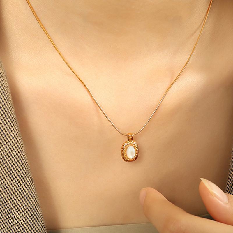 Collier de bijoux en acier inoxydable, Acier inoxydable 304, avec coquille blanche, Plaqué d'or 18K, bijoux de mode & styles différents pour le choix & pour femme, Vendu par PC