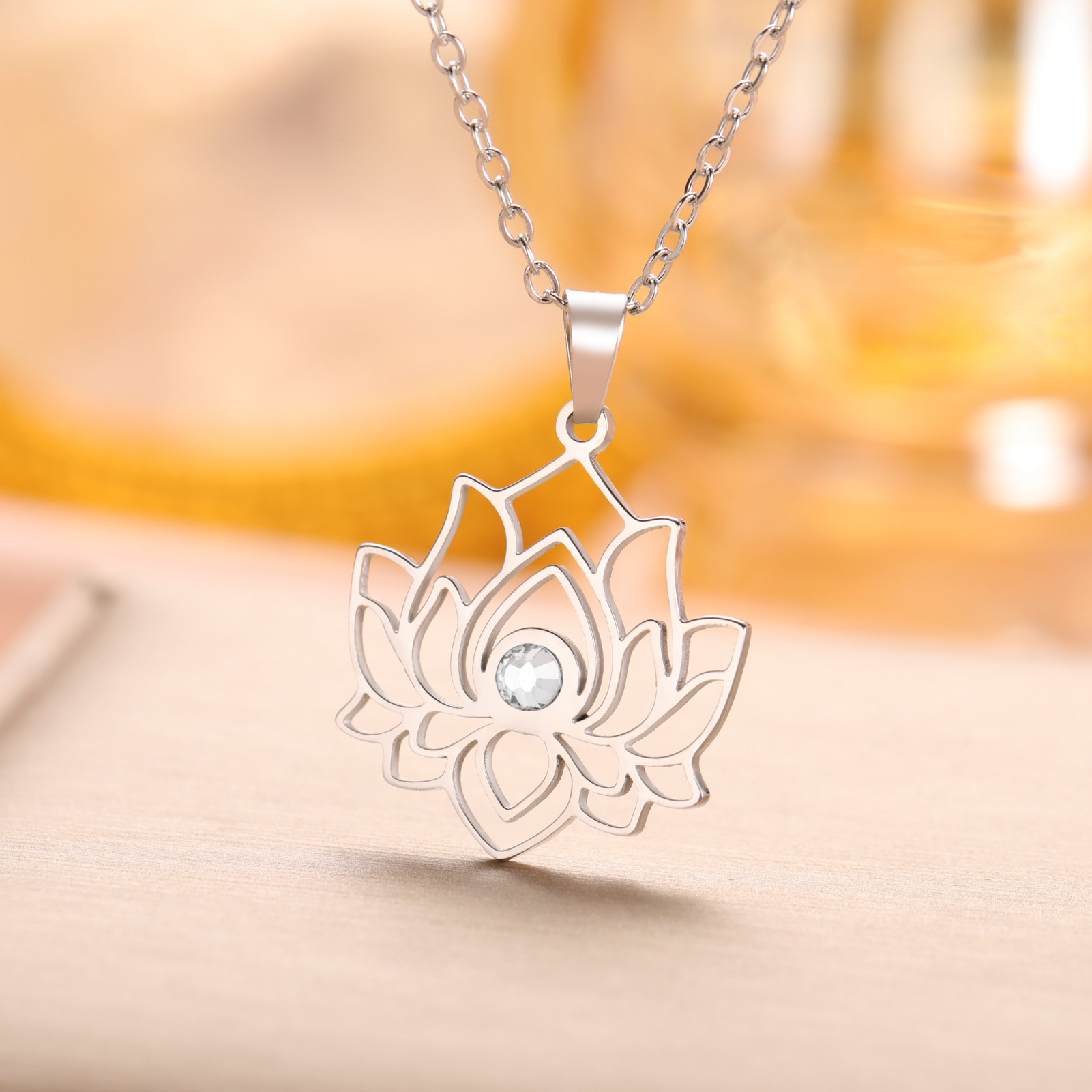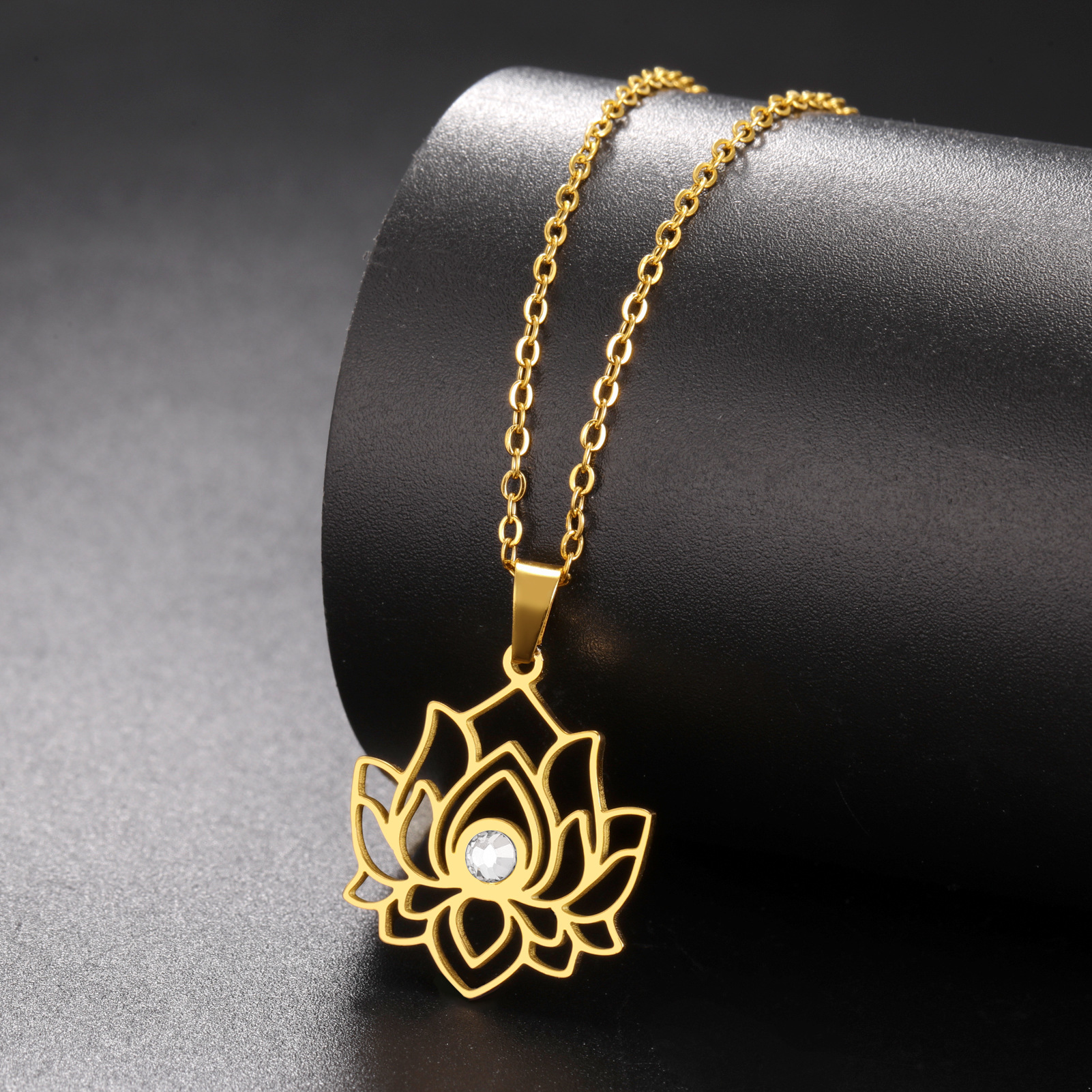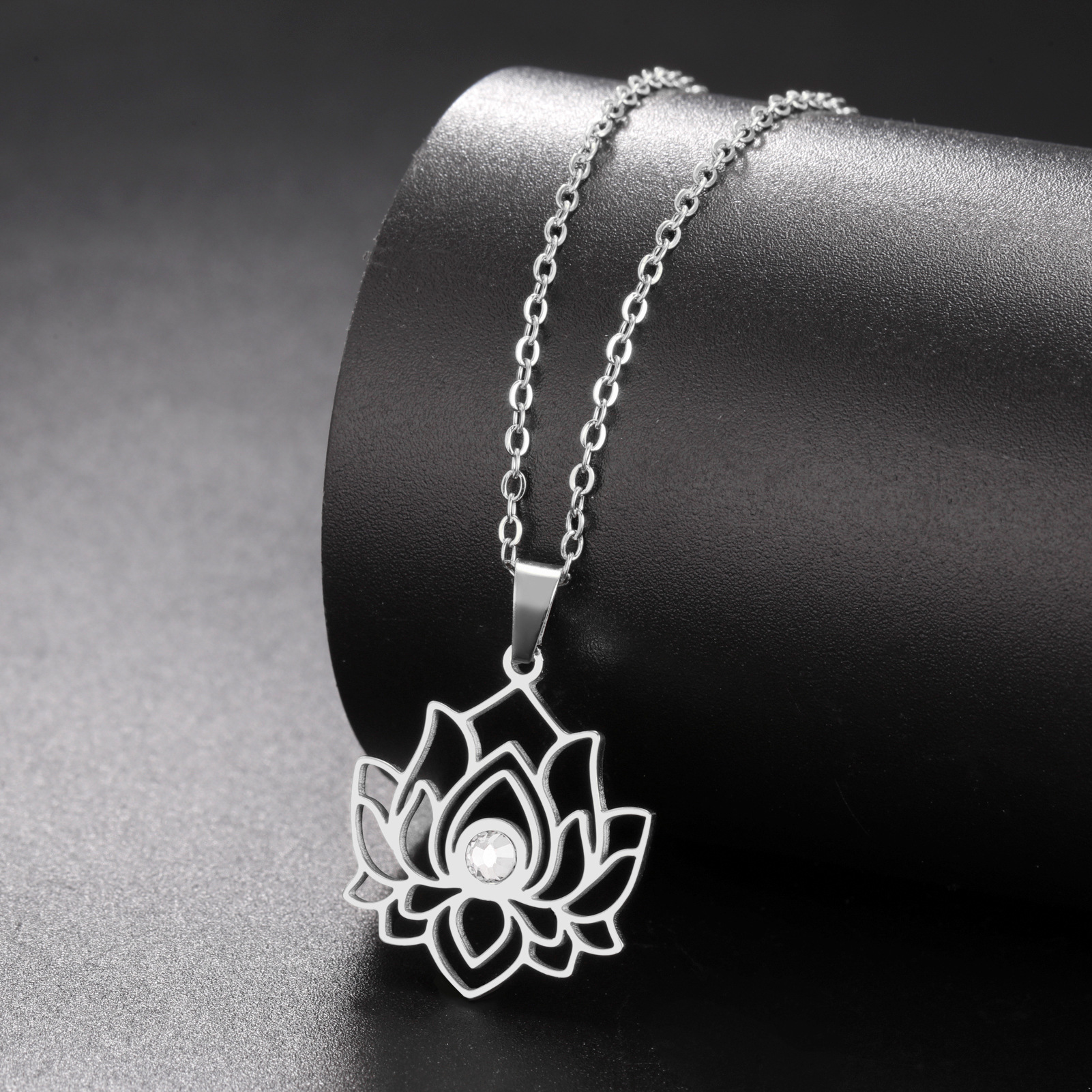 Collier de bijoux en acier inoxydable, Acier inoxydable 304, Lotus, Placage ionique sous vide, pour femme & avec strass, plus de couleurs à choisir, Longueur:51-60 cm, 10PC/sac, Vendu par sac