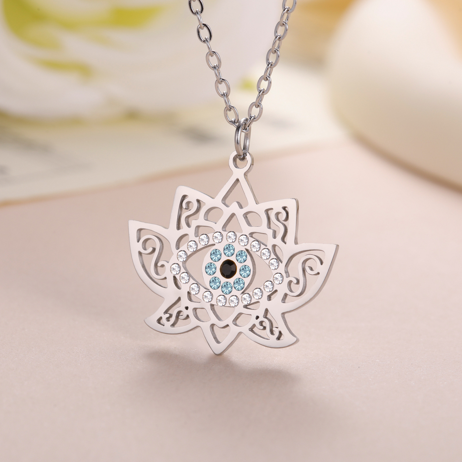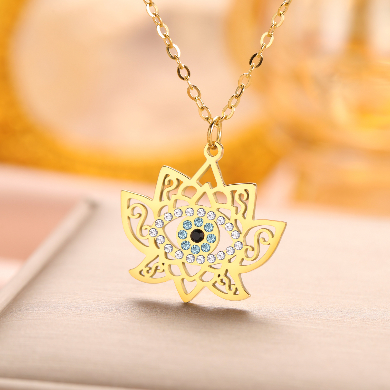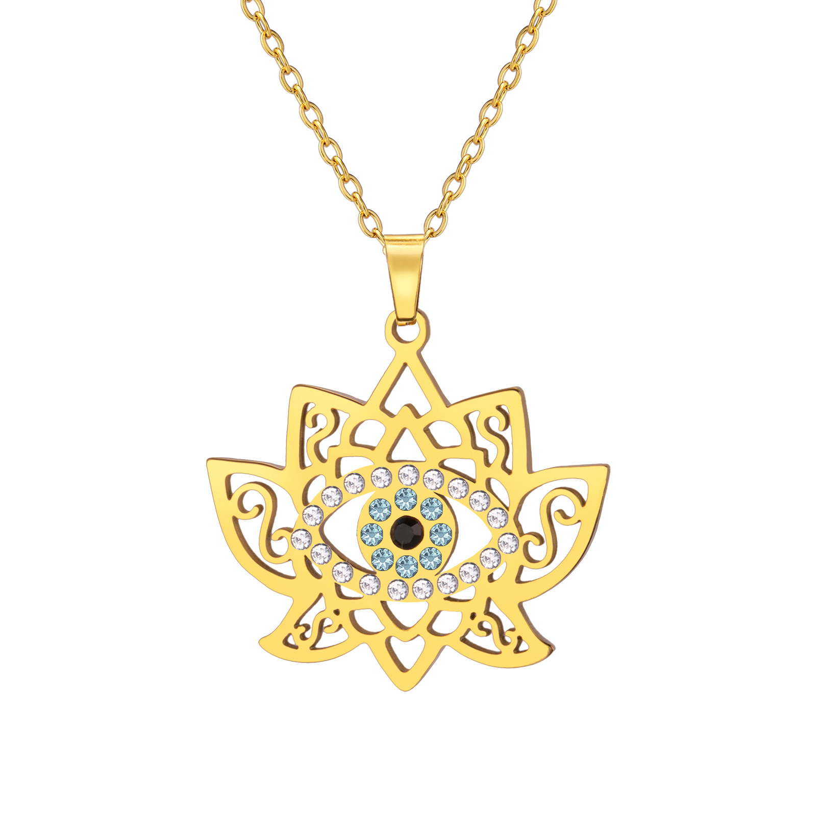 Collier de bijoux en acier inoxydable, Acier inoxydable 304, Lotus, Placage ionique sous vide, pour femme & avec strass, plus de couleurs à choisir, Longueur:51-60 cm, 10PC/sac, Vendu par sac