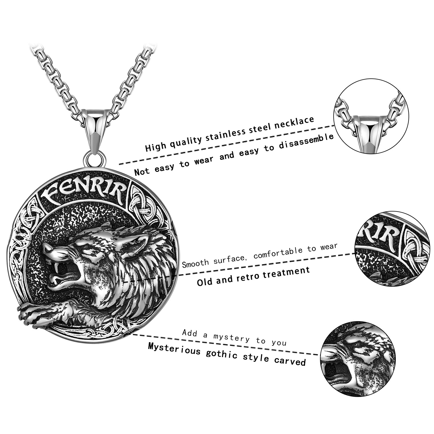 Collier de bijoux en acier inoxydable, Acier inoxydable 304, Finition antique, bijoux de mode & pour homme, couleur originale, Vendu par PC