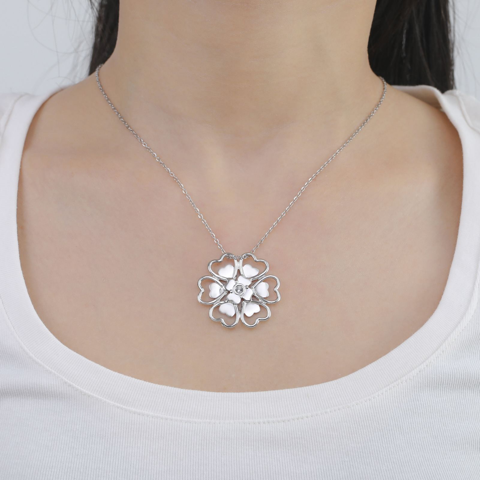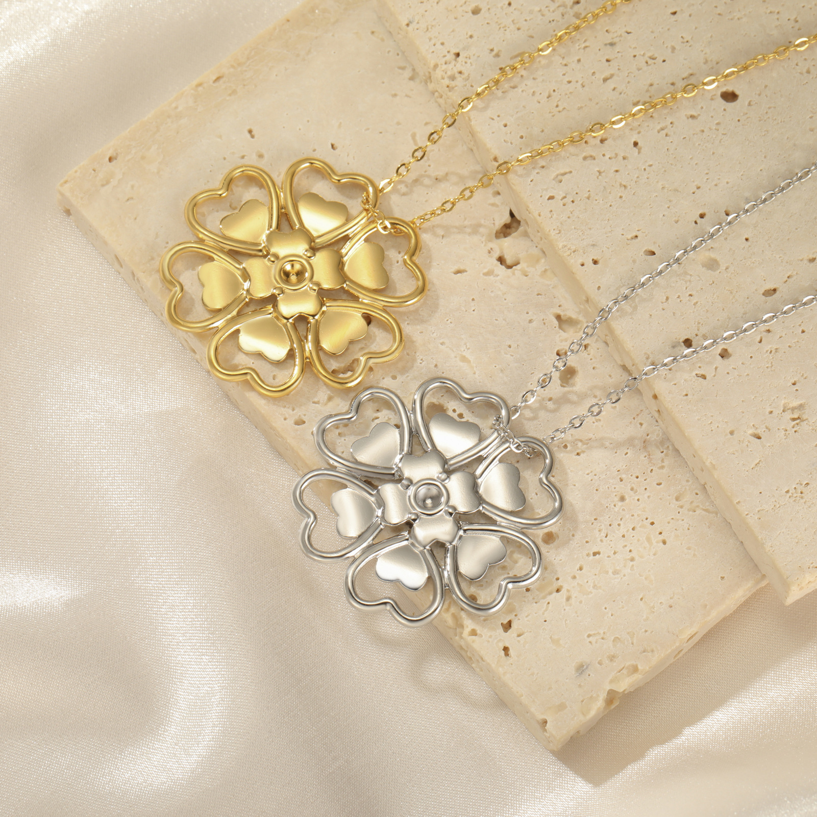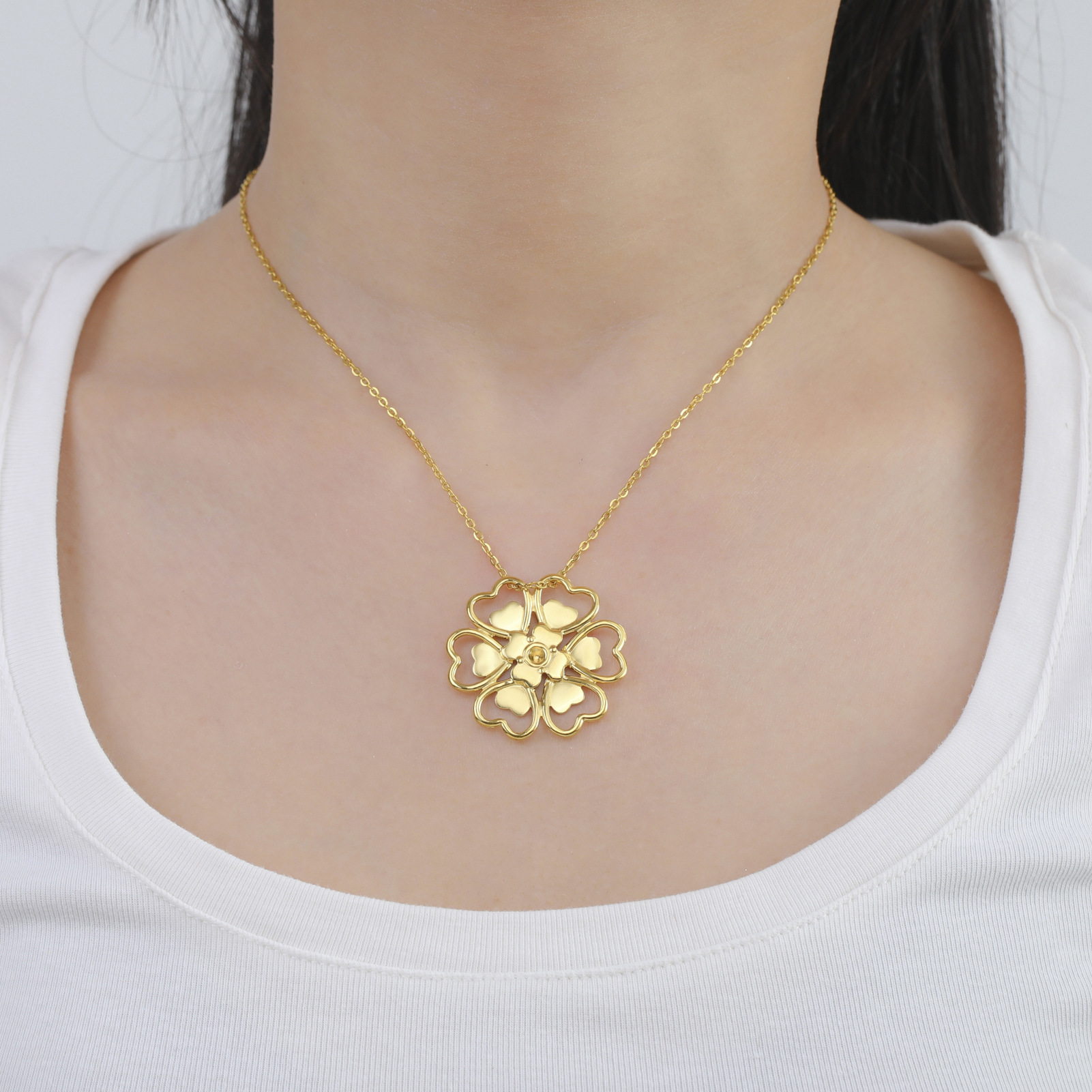Collier de bijoux en acier inoxydable, Acier inoxydable 304, fleur, Placage, pour femme, plus de couleurs à choisir, Longueur:46 cm, Vendu par PC