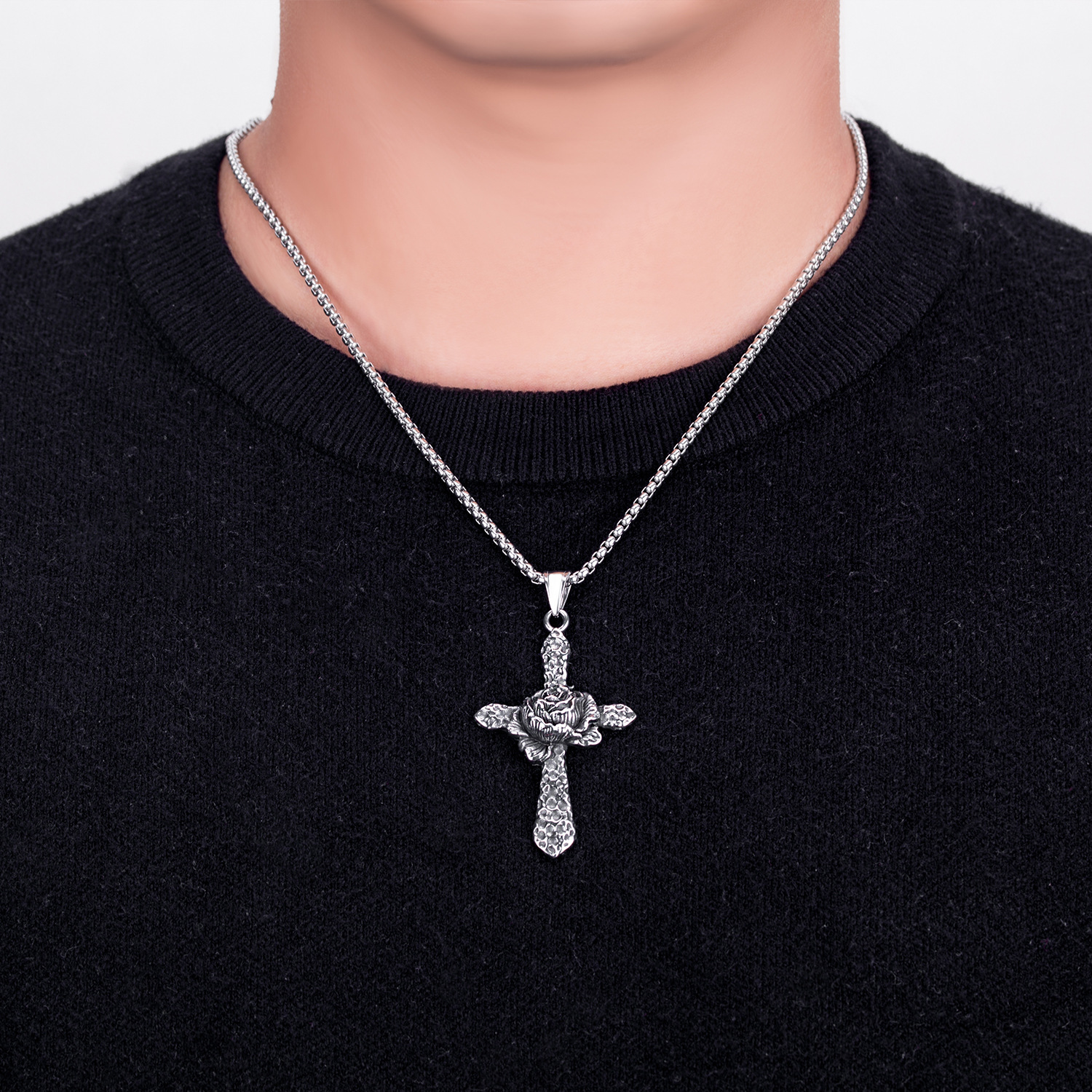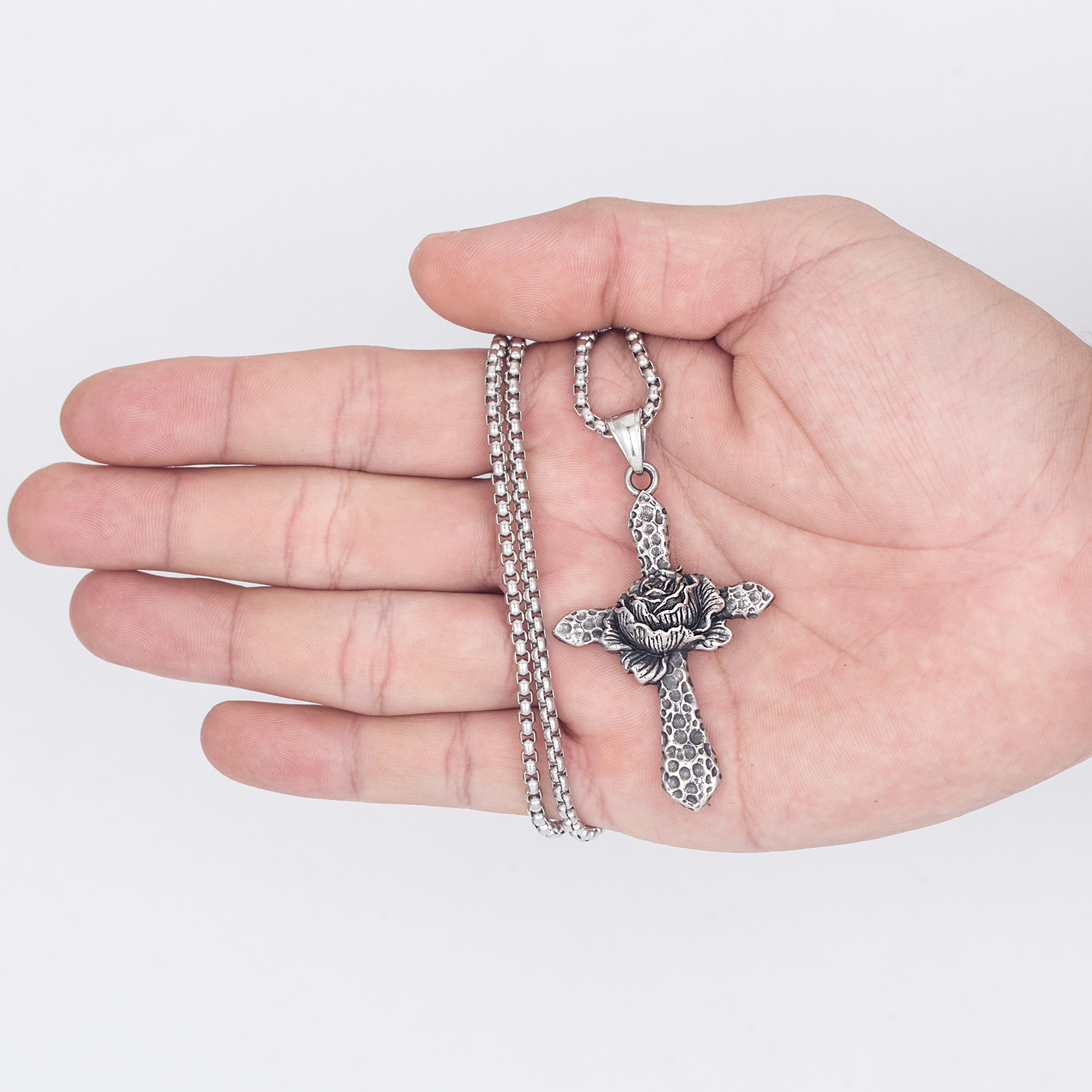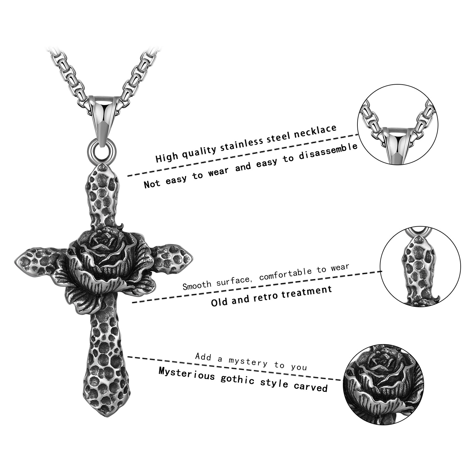 Collier de bijoux en acier inoxydable, Acier inoxydable 316, croix, Finition antique, bijoux de mode & unisexe, couleur originale, Longueur:60 cm, Vendu par PC
