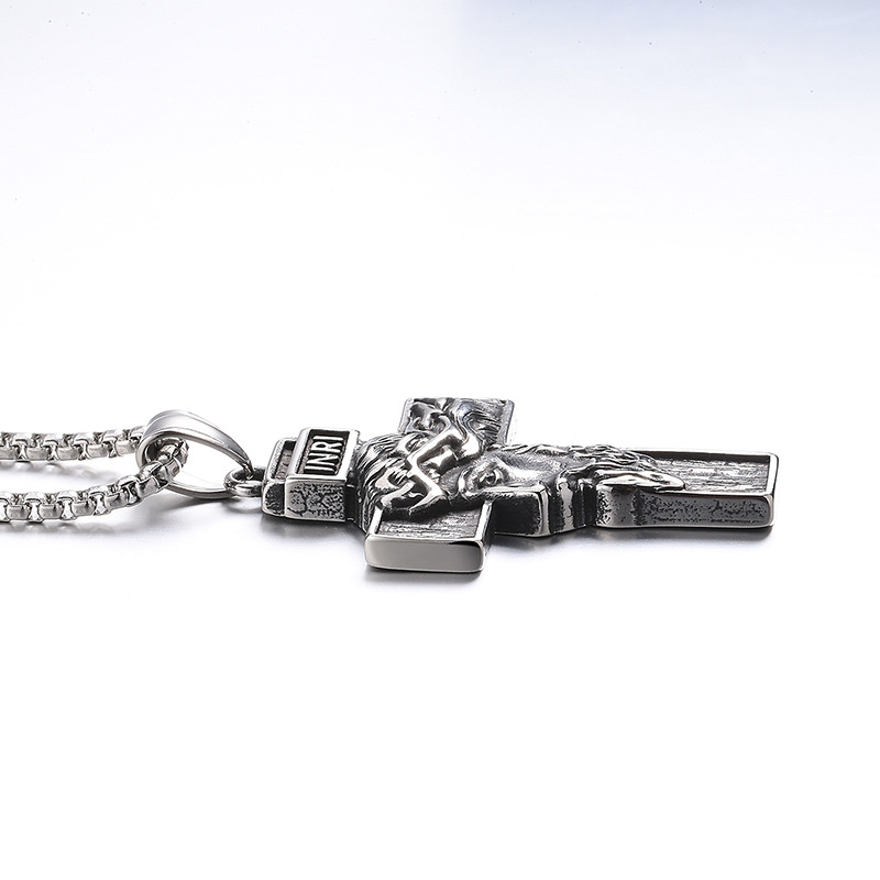 Collier de bijoux en acier inoxydable, Acier inoxydable 304, croix, Finition antique, bijoux de mode & pour homme, couleur originale, Longueur:60 cm, Vendu par PC