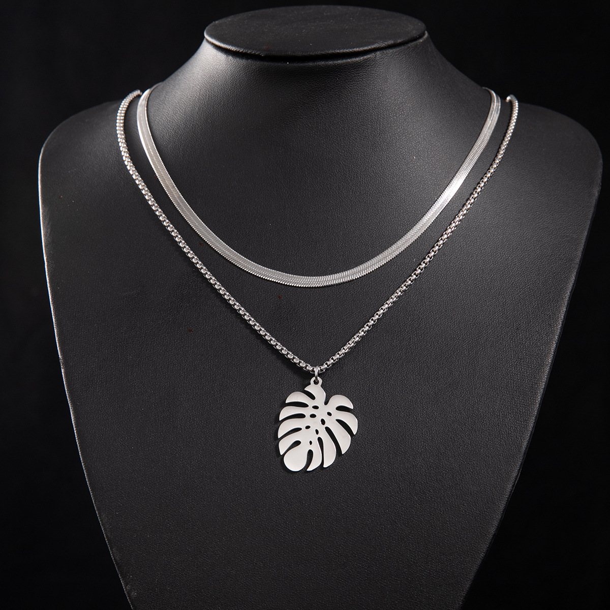 Collier de bijoux en acier inoxydable, Acier inoxydable 304, feuille, bijoux de mode & styles différents pour le choix & pour femme, plus de couleurs à choisir, Vendu par PC