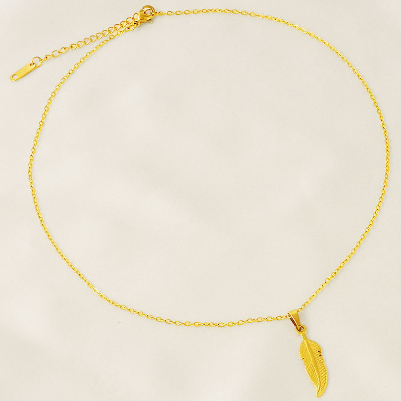 Collier de bijoux en acier inoxydable, Acier inoxydable 304, forme de plume, Placage, pour femme, plus de couleurs à choisir, Vendu par PC