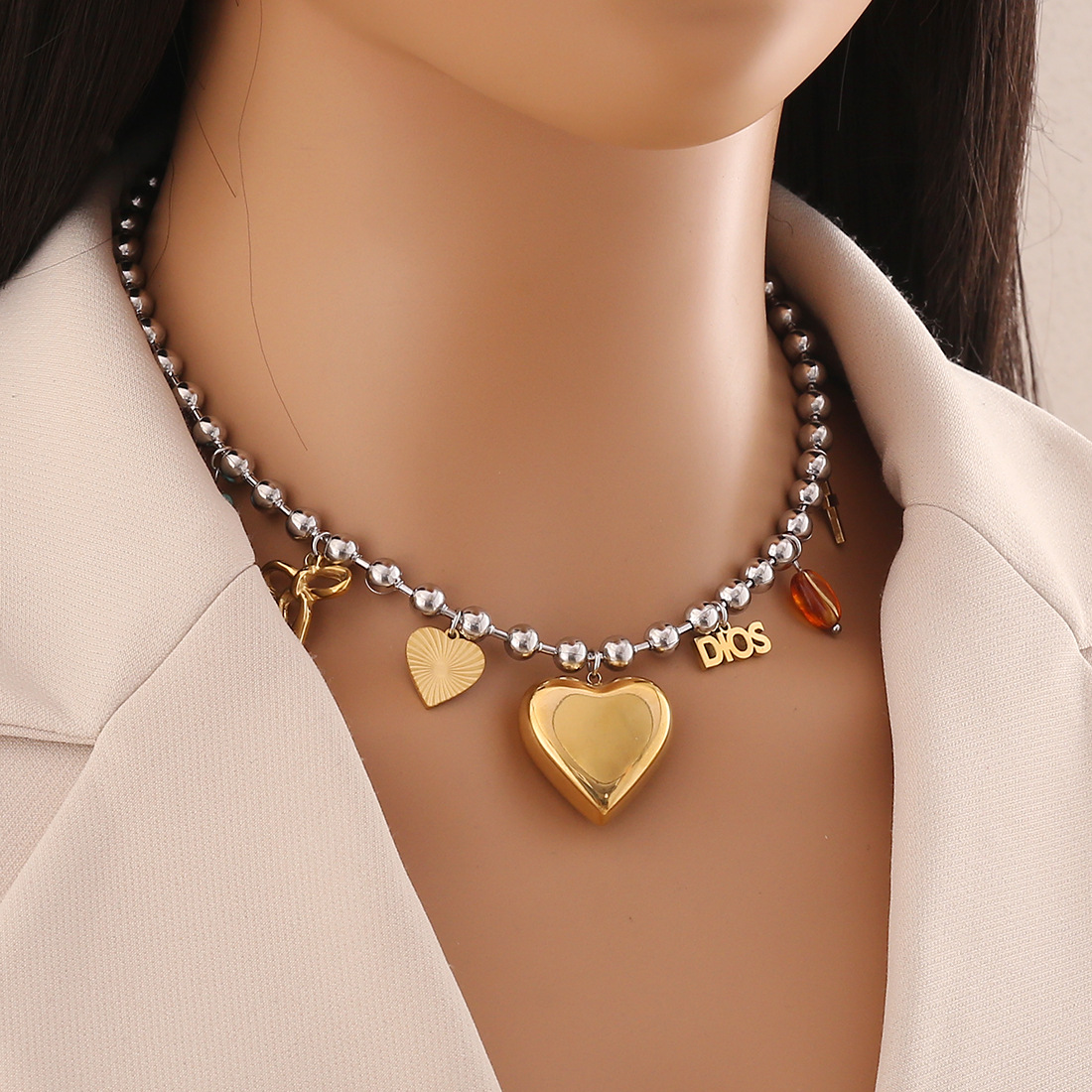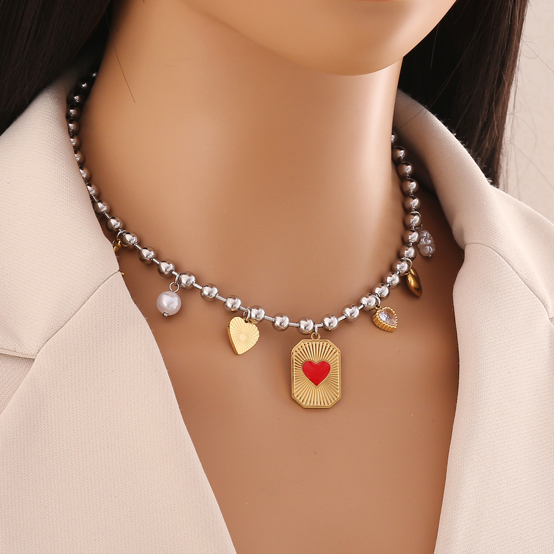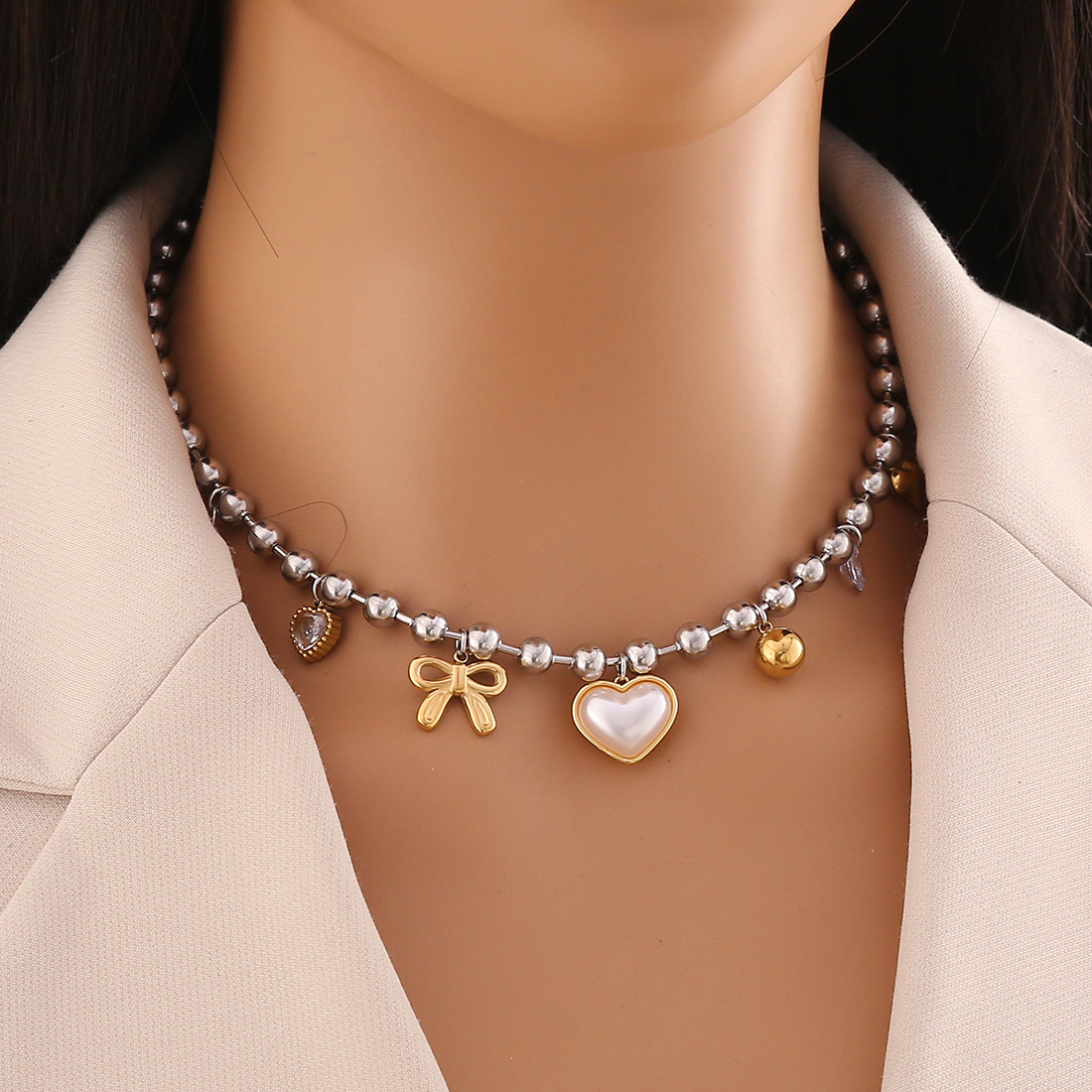 Collier de bijoux en acier inoxydable, Acier inoxydable 304, avec perle de plastique, Placage, styles différents pour le choix & pour femme & deux tons, Vendu par PC
