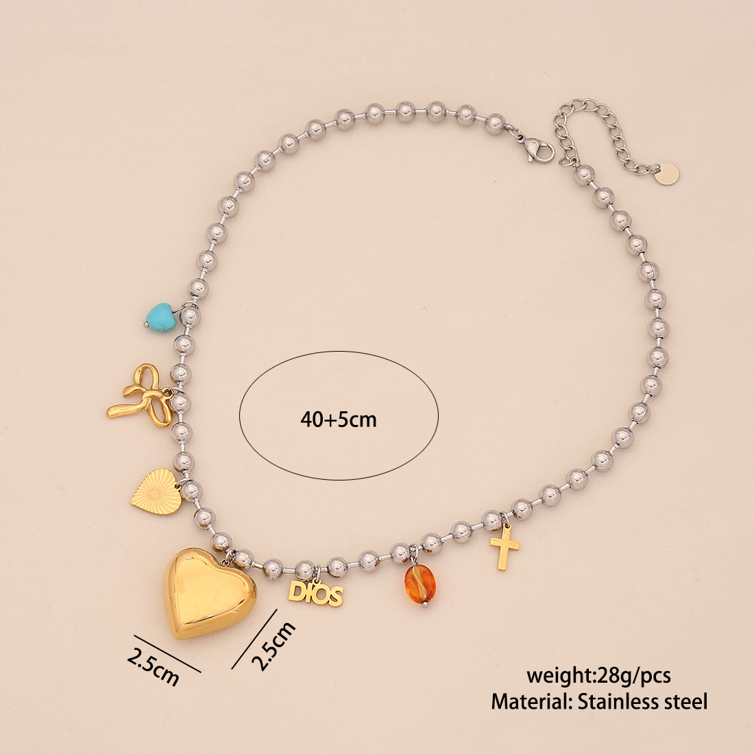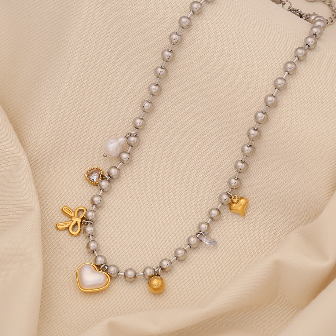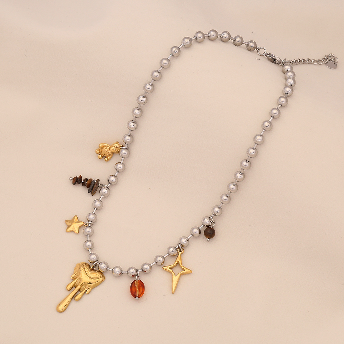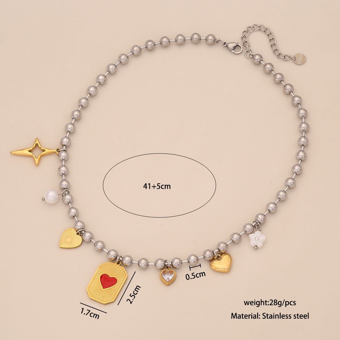Collier de bijoux en acier inoxydable, Acier inoxydable 304, avec perle de plastique, Placage, styles différents pour le choix & pour femme & deux tons, Vendu par PC