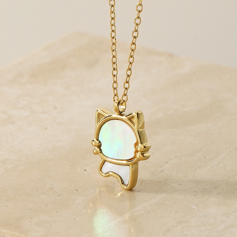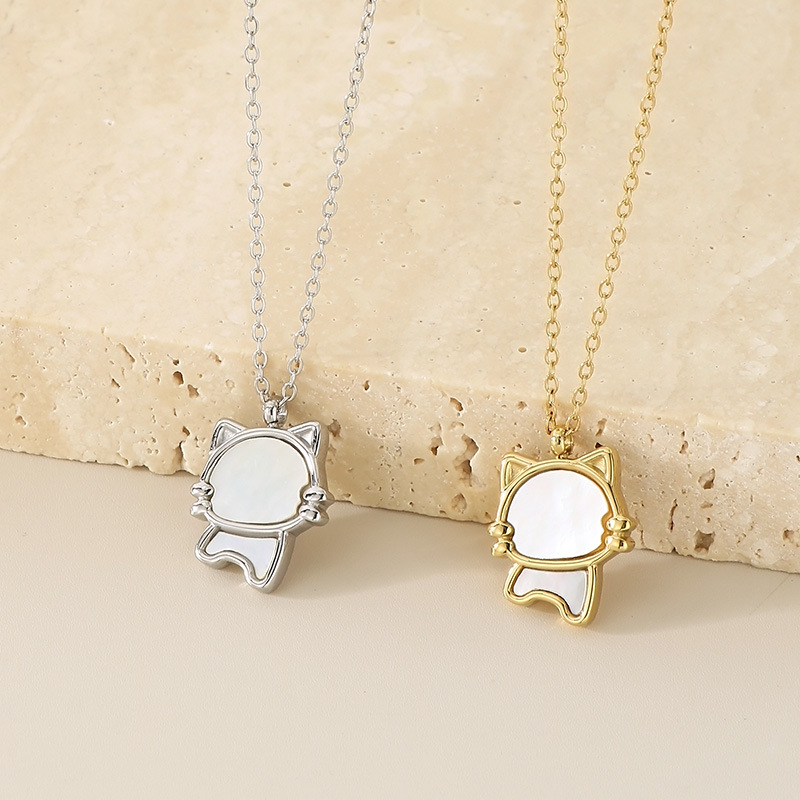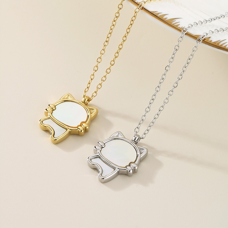 Collier de bijoux en acier inoxydable, Acier inoxydable 304, avec coquille, chat, Placage, bijoux de mode & modèles différents pour le choix, plus de couleurs à choisir, Vendu par PC