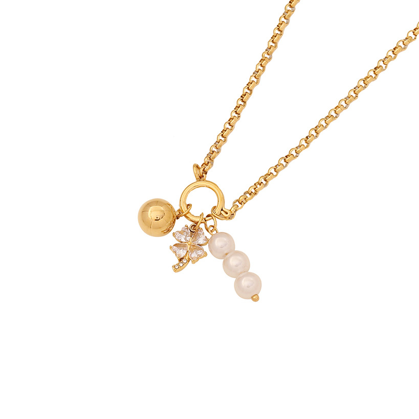 Collier de bijoux en acier inoxydable, Acier inoxydable 304, avec perle de plastique, Placage, styles différents pour le choix & pour femme & avec strass, doré, Vendu par PC