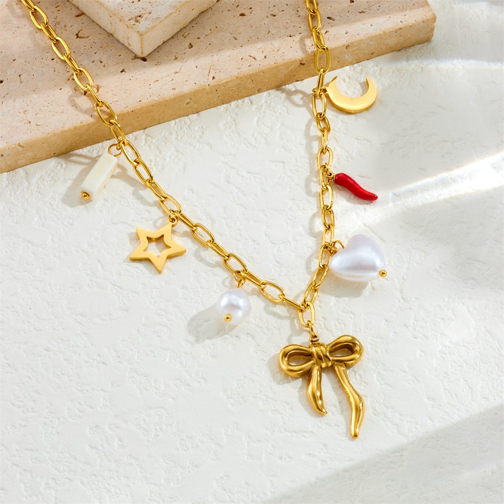 Collier de bijoux en acier inoxydable, Acier inoxydable 304, avec coquille, Placage, bijoux de mode & styles différents pour le choix & pour femme, doré, Vendu par PC