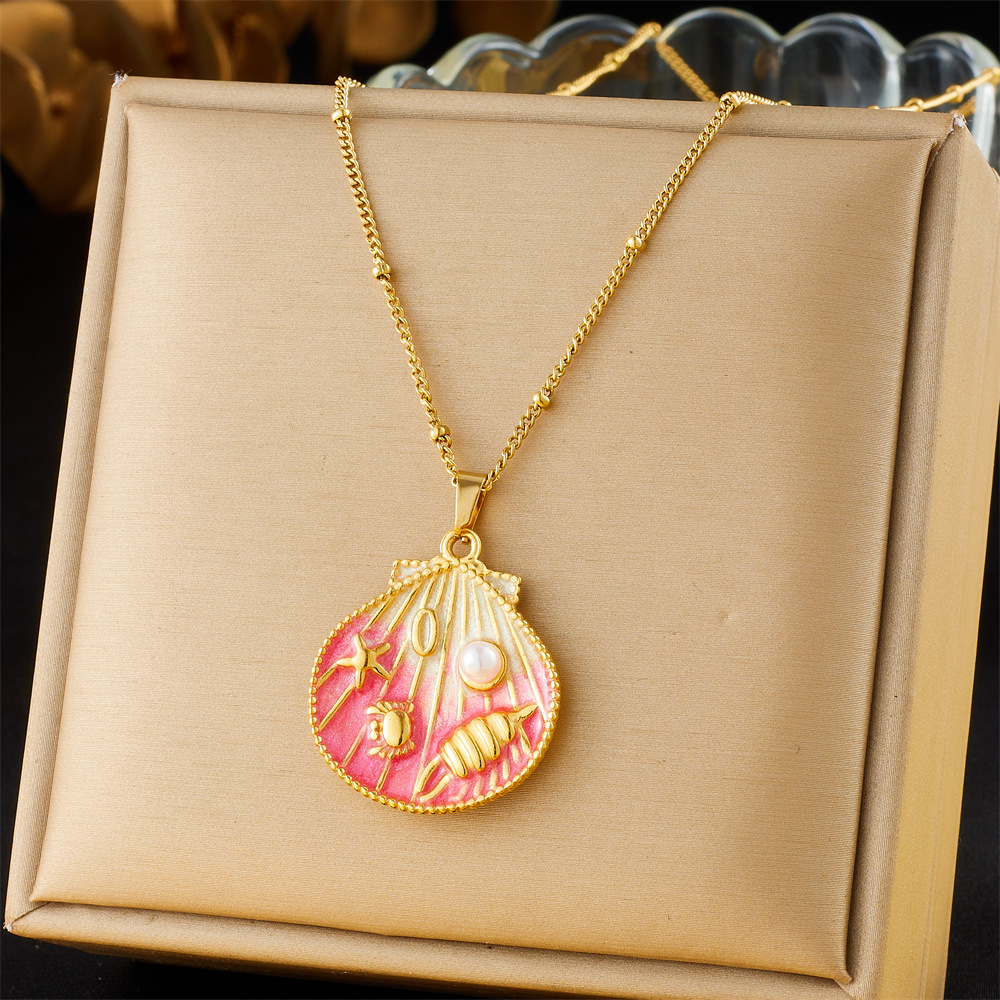 Collier de bijoux en acier inoxydable, Acier inoxydable 304, avec perle de plastique, Placage de couleur d'or, bijoux de mode & pour femme & émail, plus de couleurs à choisir, Vendu par PC
