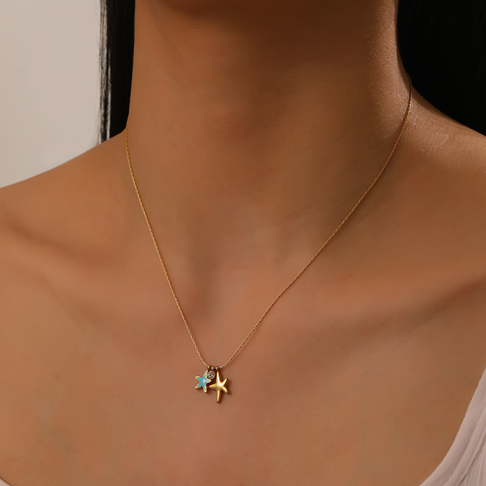 Collier de bijoux en acier inoxydable, Acier inoxydable 304, Placage de couleur d'or, pour femme & émail & avec strass, Vendu par PC