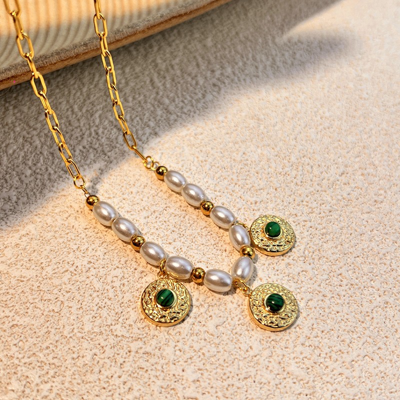 Collier de bijoux en acier inoxydable, Acier inoxydable 304, avec Gemme synthétique & perle de plastique & fer, Placage, bijoux de mode & pour femme, Vendu par PC