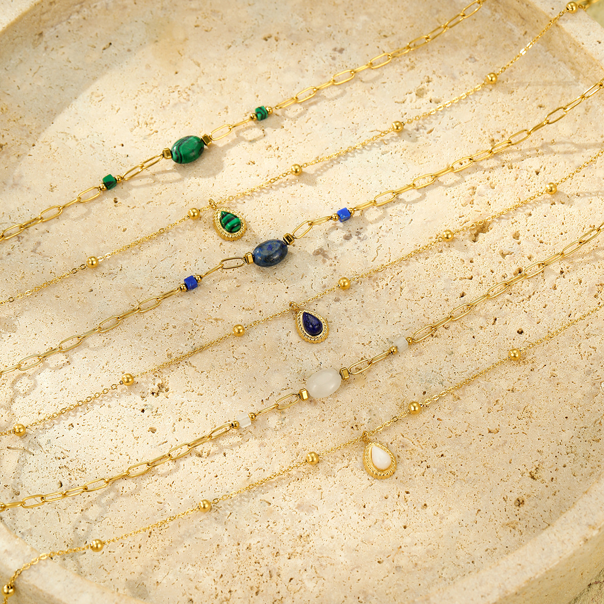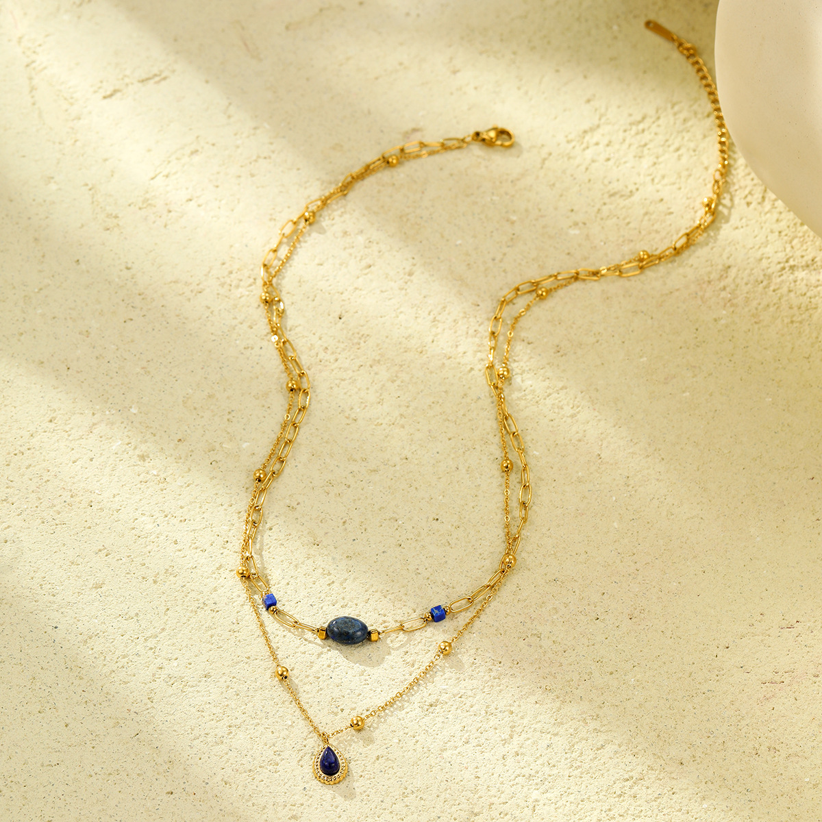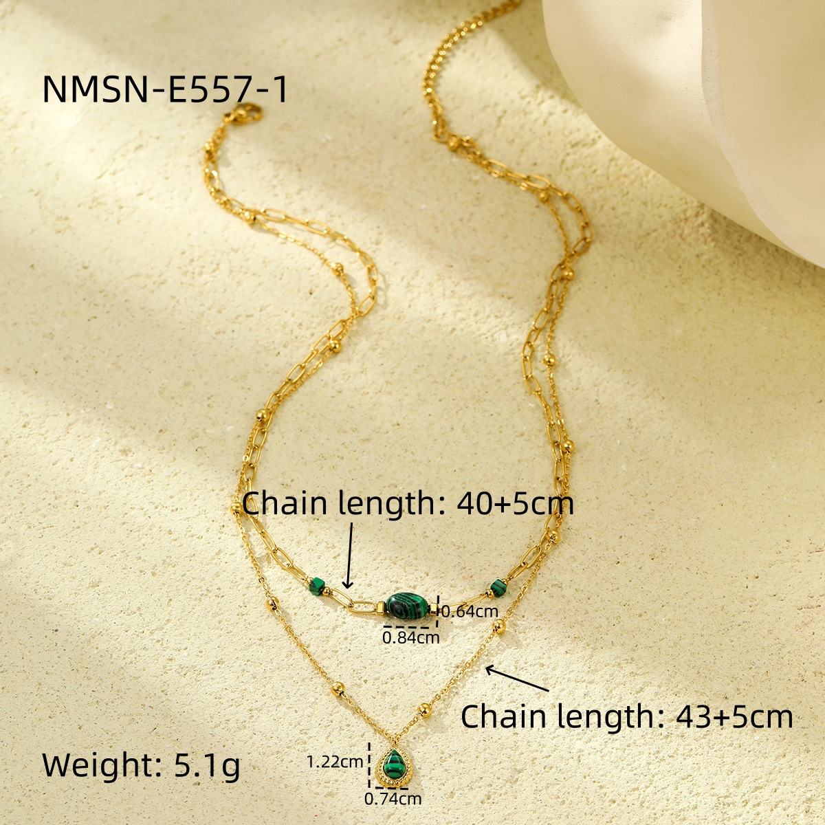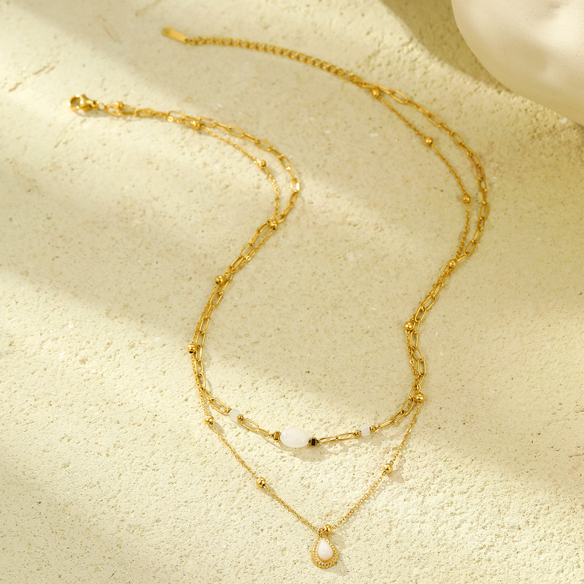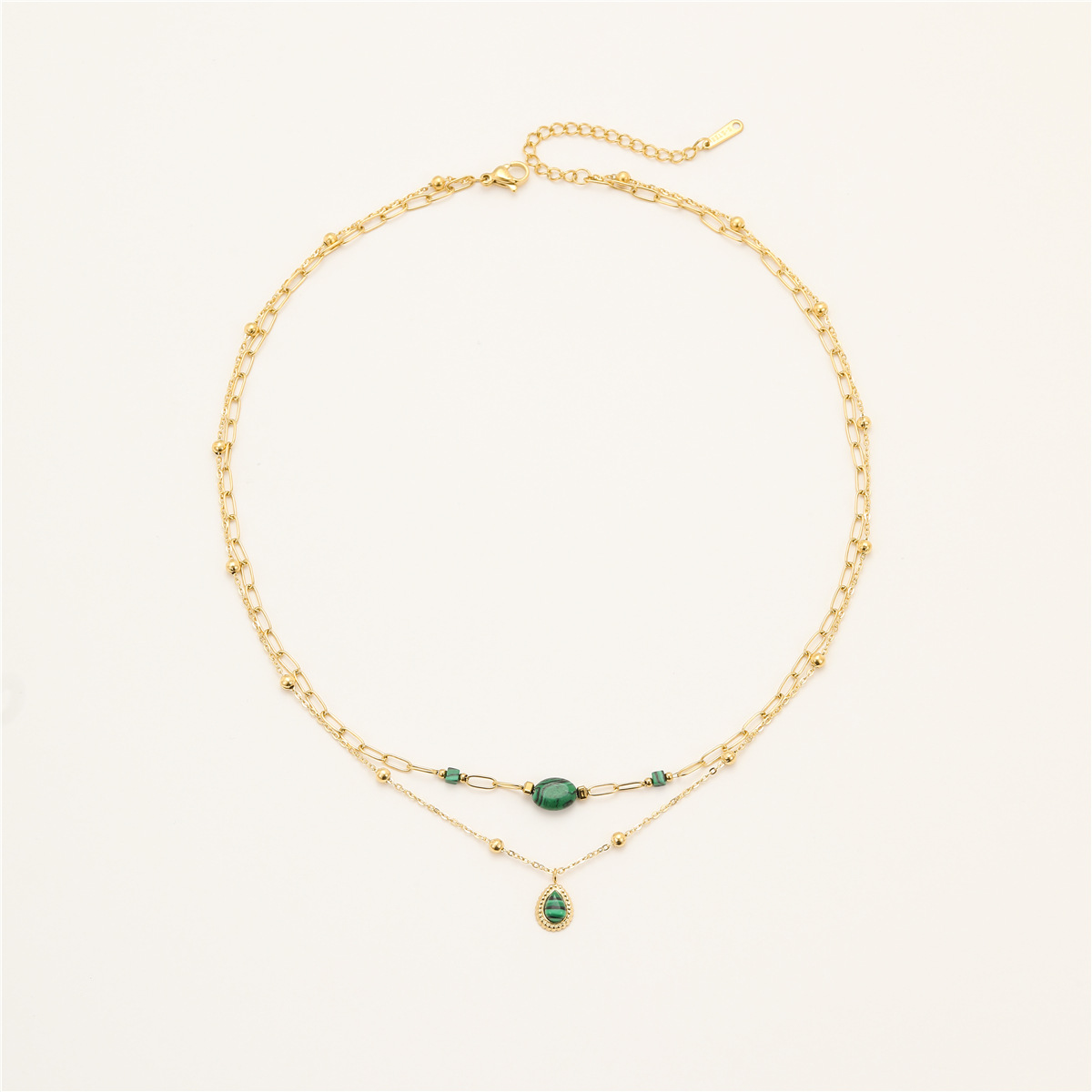Collier de bijoux en acier inoxydable, Acier inoxydable 304, avec Pierre naturelle, Plaqué or 18K, Double couche & différents matériaux pour le choix & pour femme, Vendu par PC