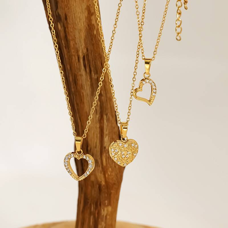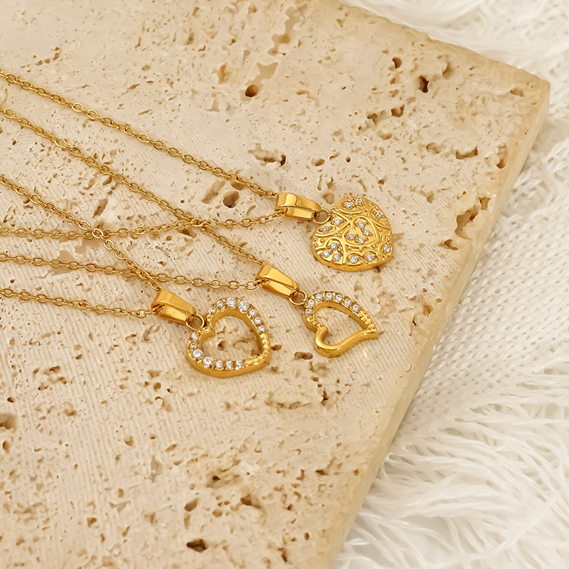 Collier de bijoux en acier inoxydable, Acier inoxydable 304, Plaqué or 18K, styles différents pour le choix & pavé de micro zircon & pour femme, Vendu par PC
