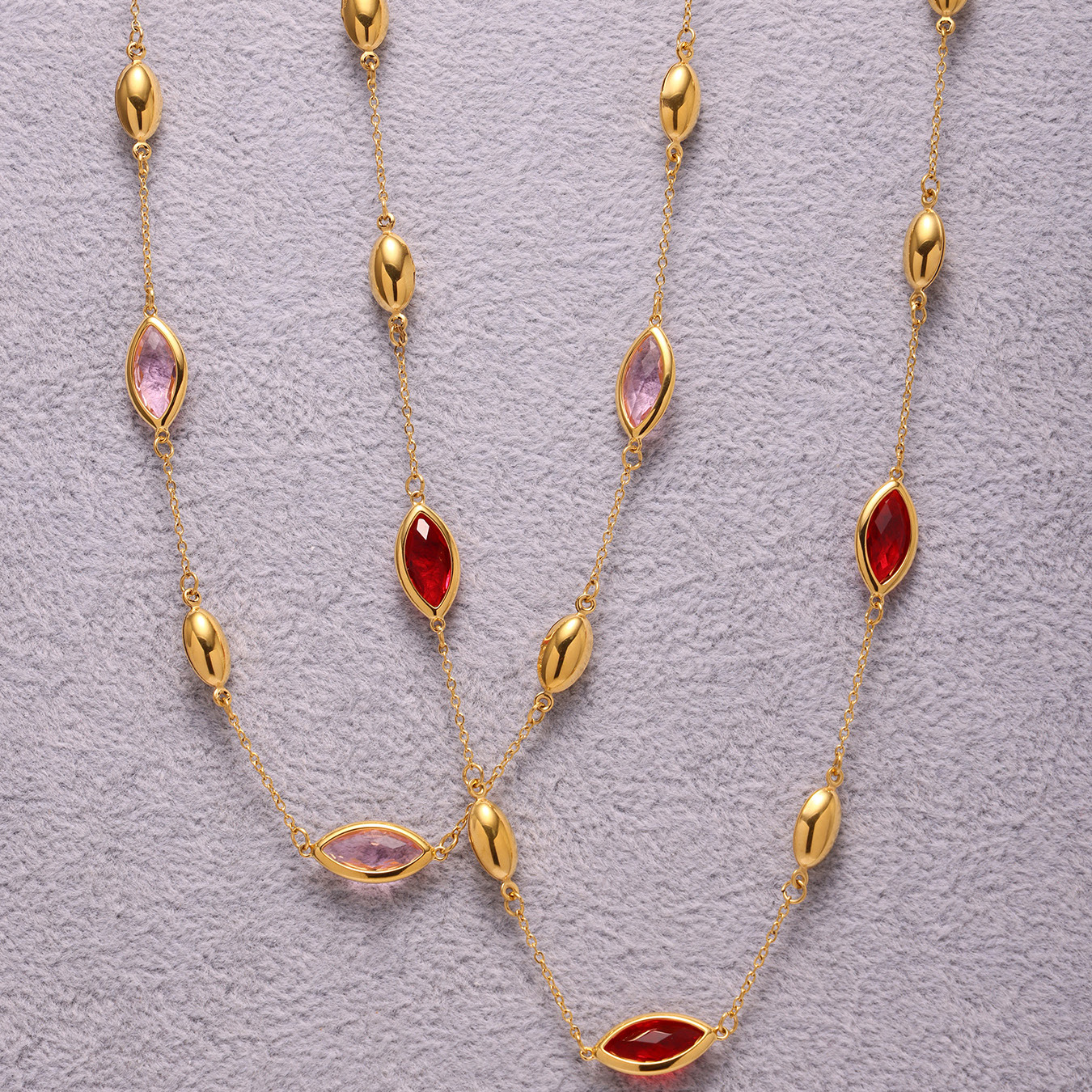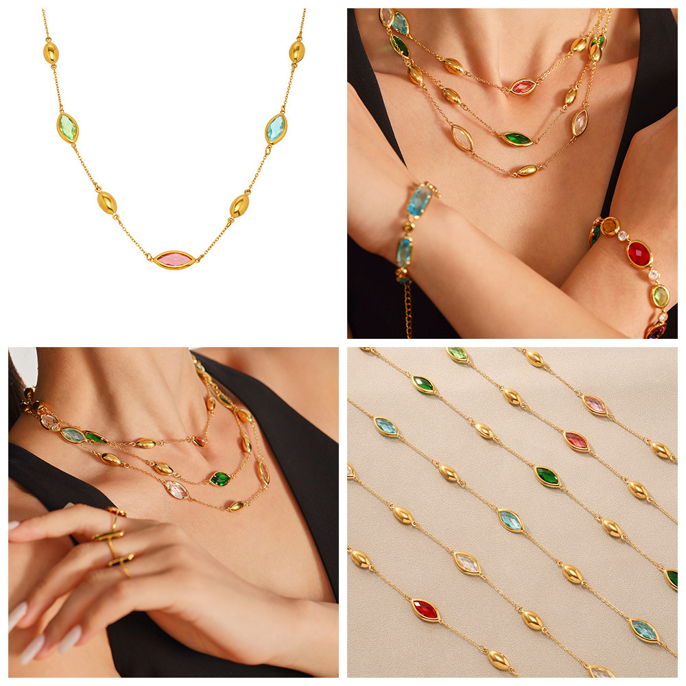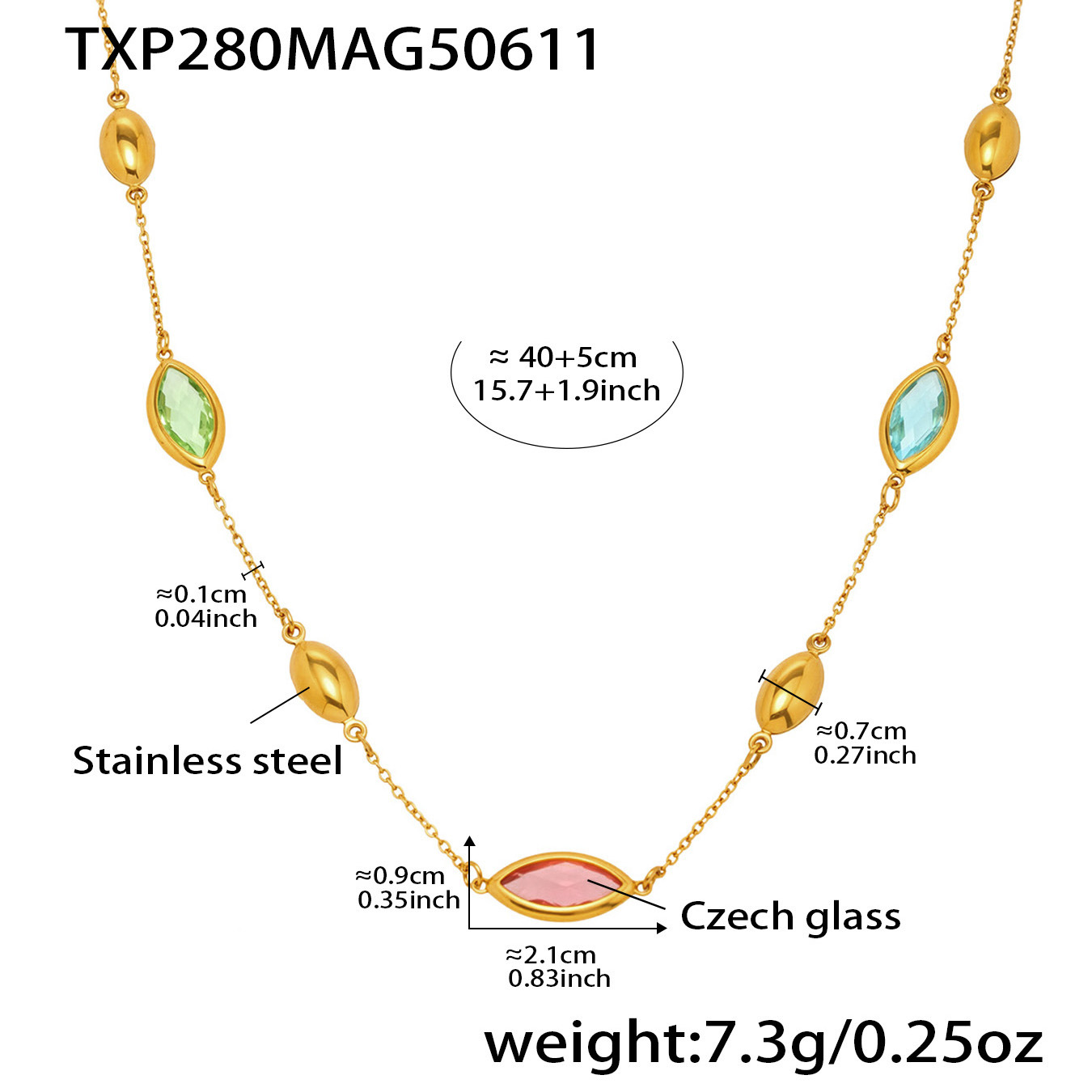 Collier de bijoux en acier inoxydable, Acier inoxydable 304, avec Pierre de verre, Placage de couleur d'or, bijoux de mode & pour femme, plus de couleurs à choisir, Vendu par PC