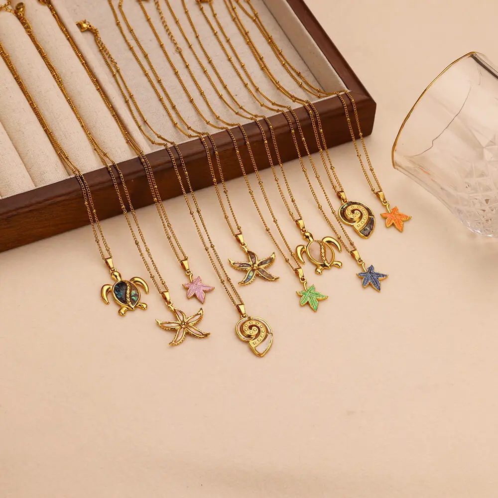 Collier de bijoux en acier inoxydable, Acier inoxydable 304, avec coquille blanche, Placage, bijoux de mode & styles différents pour le choix & pour femme, doré, Longueur:Environ 21-50 cm, Vendu par PC