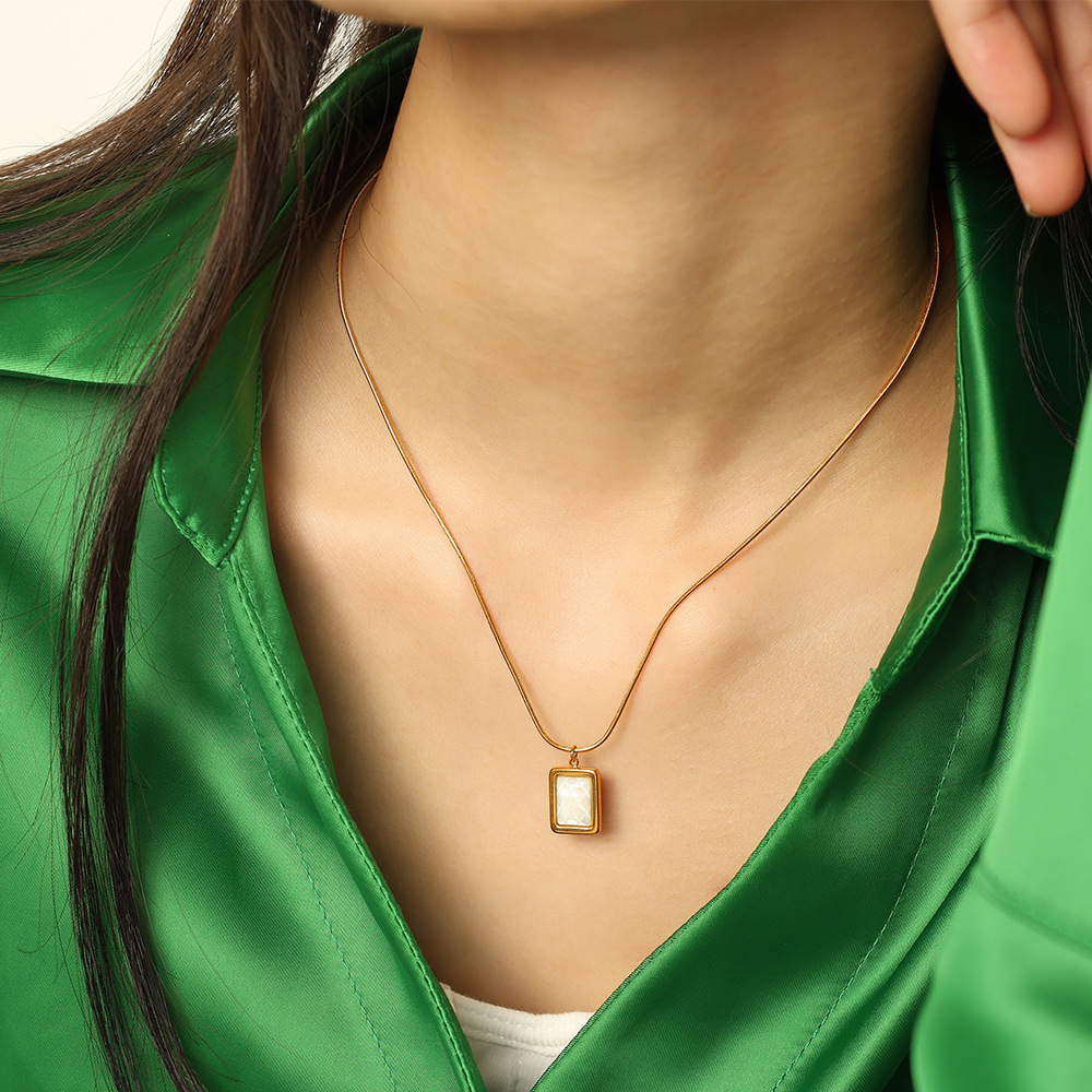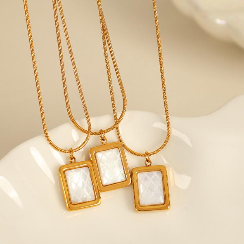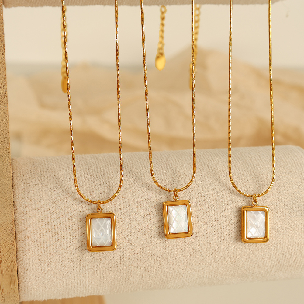 Collier de bijoux en acier inoxydable, Acier inoxydable 304, avec coquille blanche, Placage, bijoux de mode & pour femme, doré, Vendu par PC